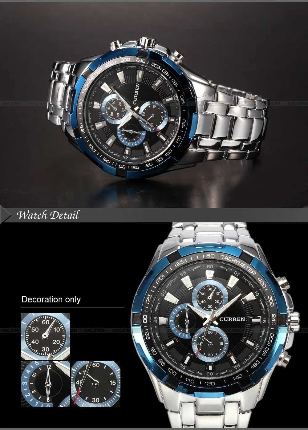 100% Новинка с биркой и высоким качествомМужские часы для досугаЗащита от воды3 дополнительных циферблата предназначены только для украшения