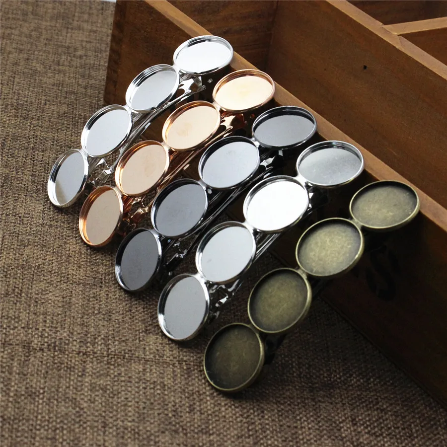 Металлические заколки для волос с круглым кабошоном, 5 шт., 20 мм