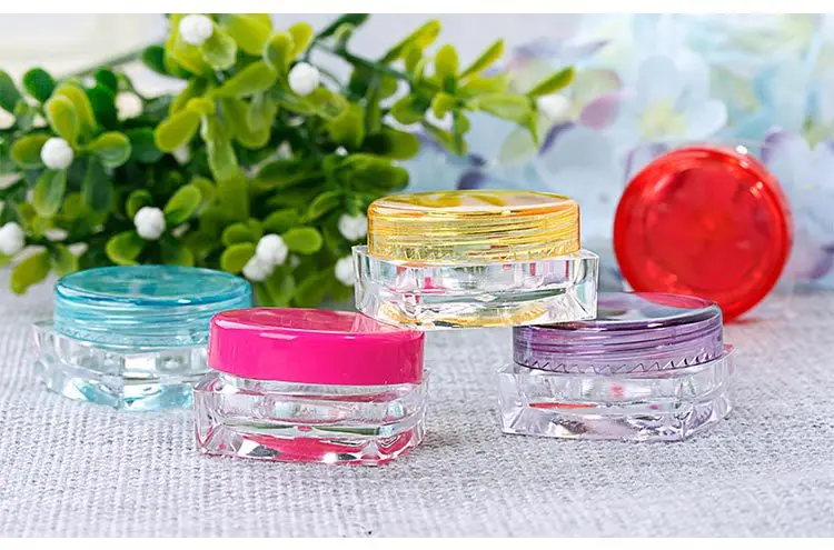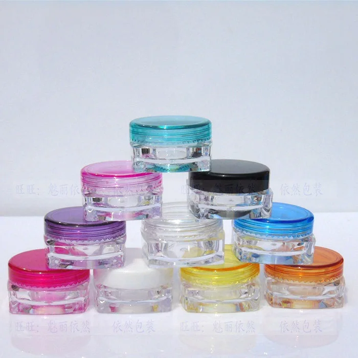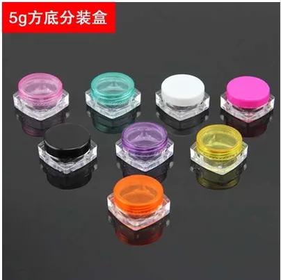 Оптовая продажа-100 шт многоцветная Косметическая 5 мл прозрачная квадратная банка для косметики и 10 цветов обода окно Топ образец банка Posh, LKU011