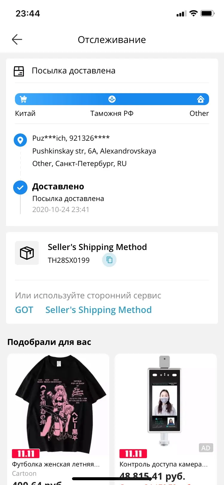 Продавец товар не отправил. Как и остальным терпилам, отправил липовый трек. Сделал возврат.