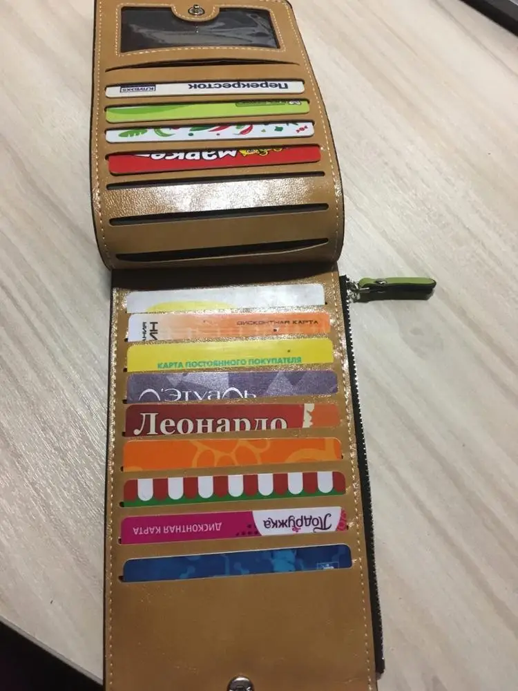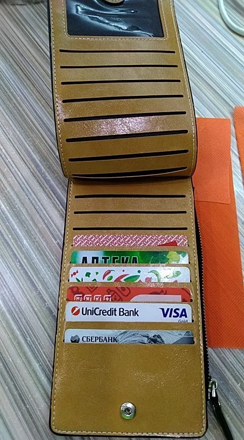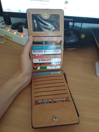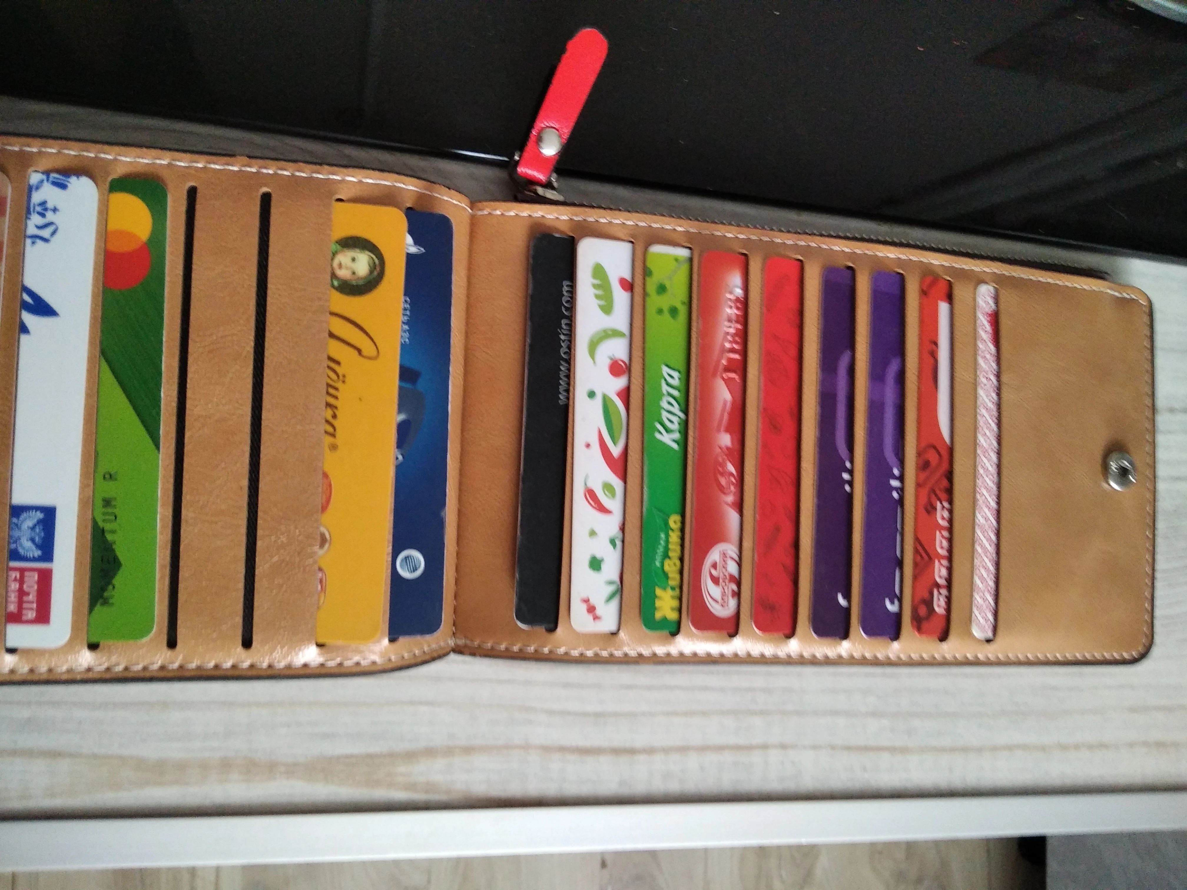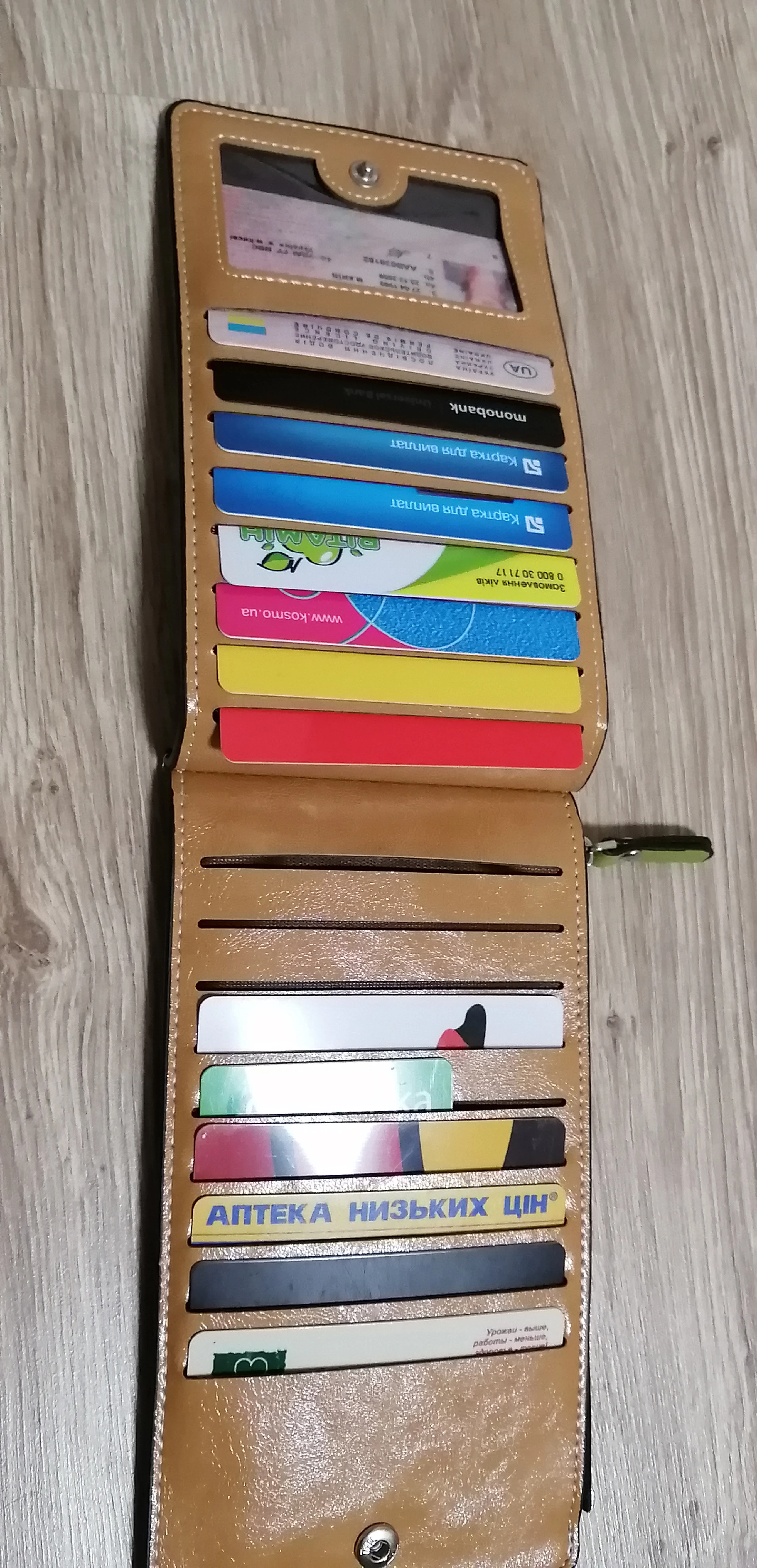 Прикольный кошелечек, немного смущает расположение прорезей для карт, а так нормально