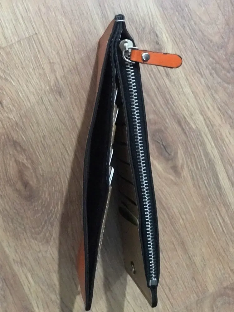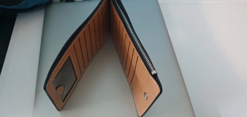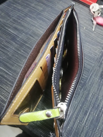 Разочарование (((До этого был кошелек,точно такой же модели,но намного лучше.Кожа была более плотной,внутри была подкладка.Тут ничего этого нет,материал тонкий ,молния короткая и ездит плохо.Вообщем совсем не такой,как ожидался.С преведущим почти пять лет проходила.Ну и доставка долгая