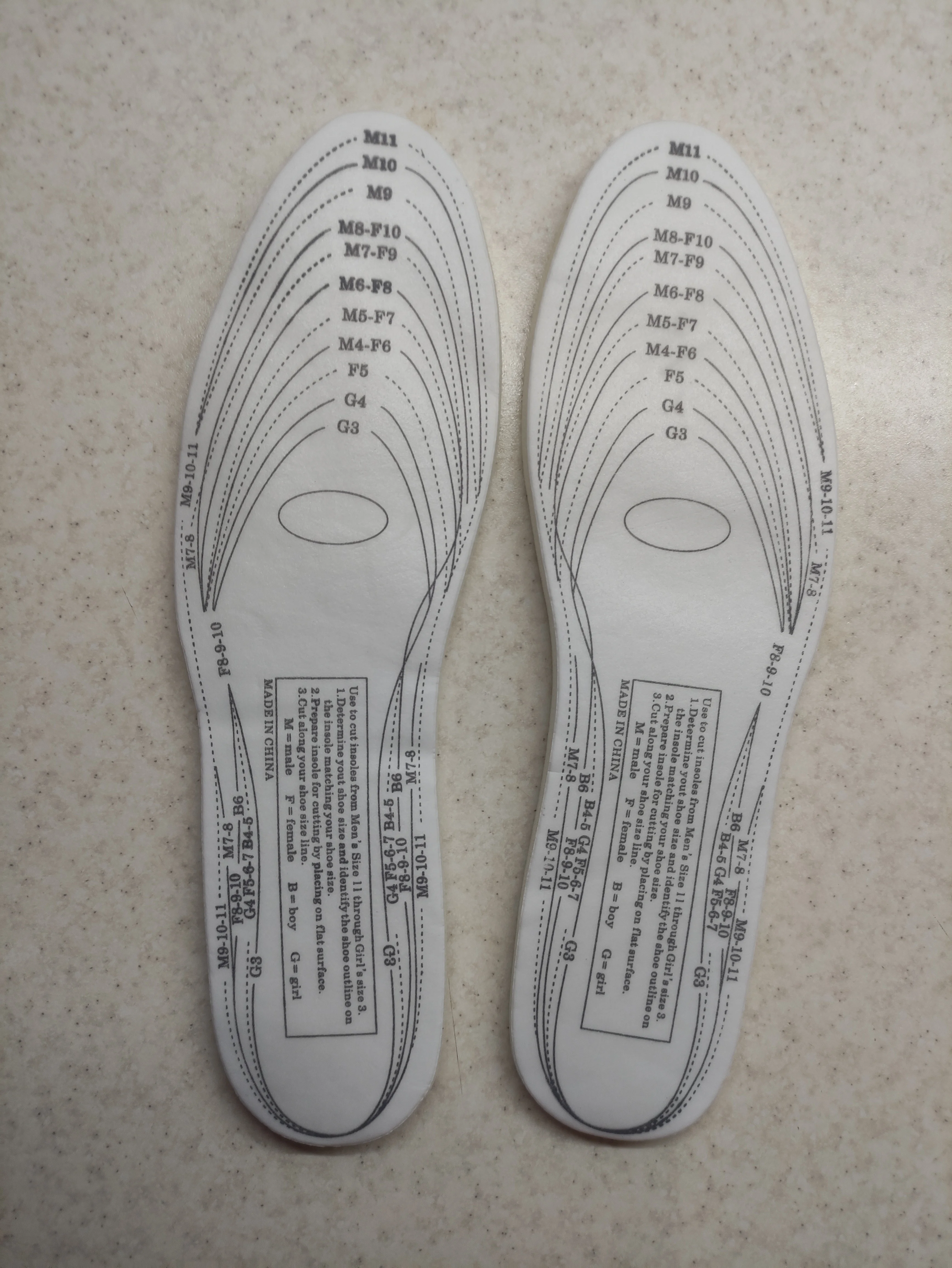 Доставка задержалась в Краснодарский край на ~ 3 месяца. Толщина стелек больше, чем указано в описании - почти 10 мм (на фото). Имейте это ввиду - кому-то может показать высоковато. При этом поверхность для стопы имеет очень большое сцепление. При одевании стопа (даже в носке) сдвигает и проталкивает стельку ещё глубже, что очень неудобно. То же самое происходит при разувании - стопа при вынимании из кроссовок вытягивает с собой стельку наружу. Наверное, придётся наклеивать сверху специальный материал. Считаю, что данные стельки не подходят для варианта "сунул и пошёл", продукт требует доработки. Кому нет времени с этим париться - не заказывайте. Всем удачи)