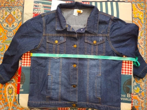 На Ог 120 5хл впритык(еле сошлось). Заказала 2 разные джинсовки, перепутали заказы.Даю подтверждение на короткую, которую получила раньше. Она не тёмная, как на фото, тоже маломерка. Неплохая. С продавцом не общалась.