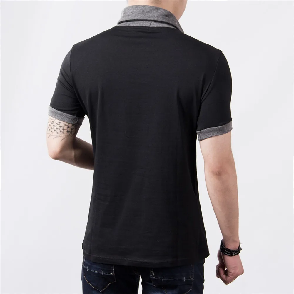Новинка размера плюс, летние мужские футболки, мода 2021, тонкая хлопковая черная футболка с коротким рукавом и v-образным вырезом, мужские Топы И Футболки на пуговицах