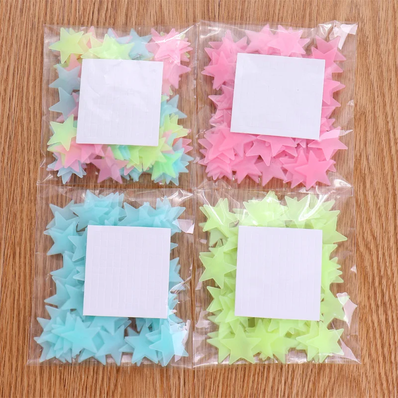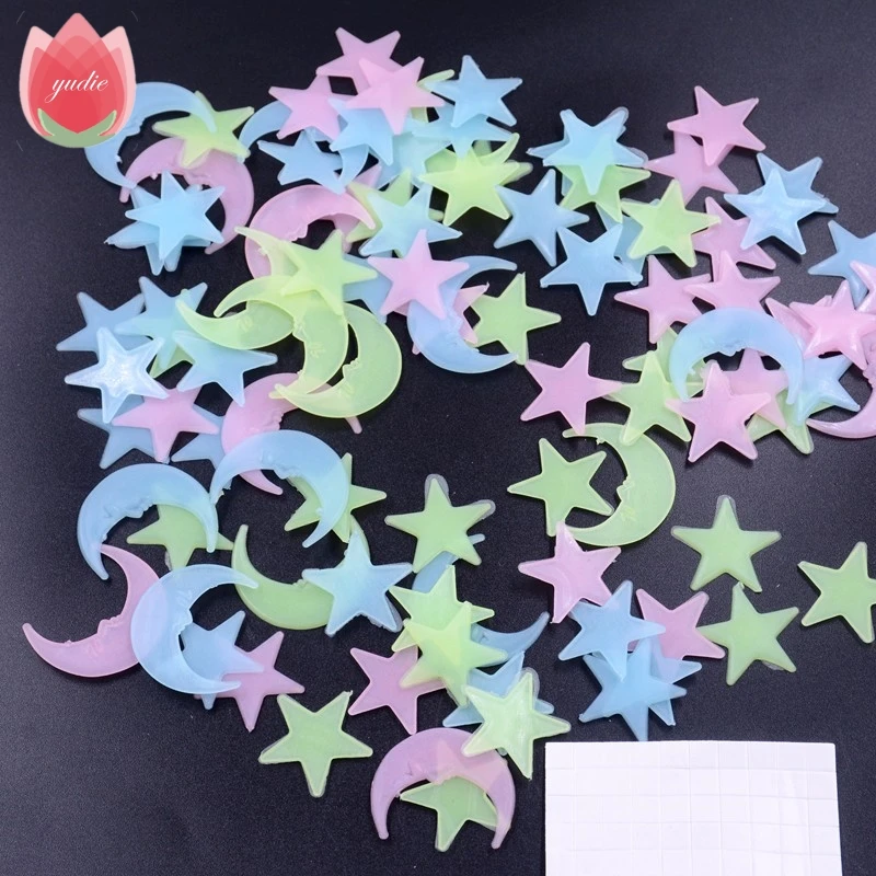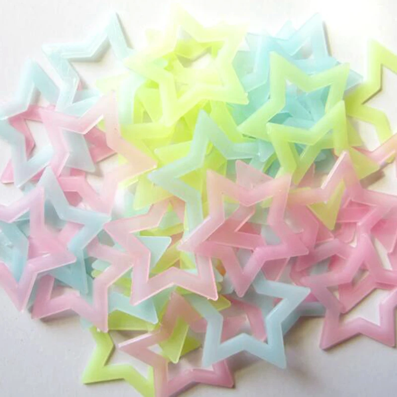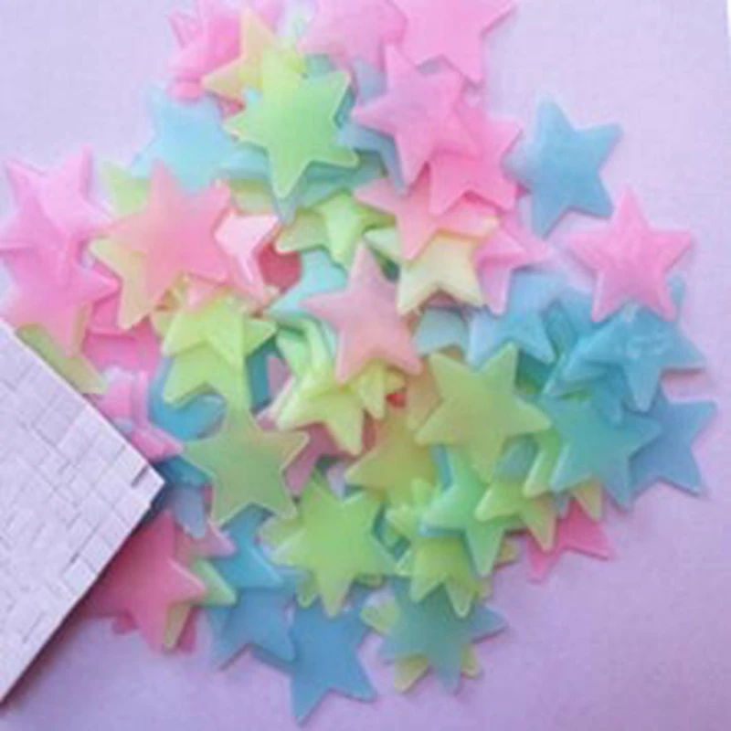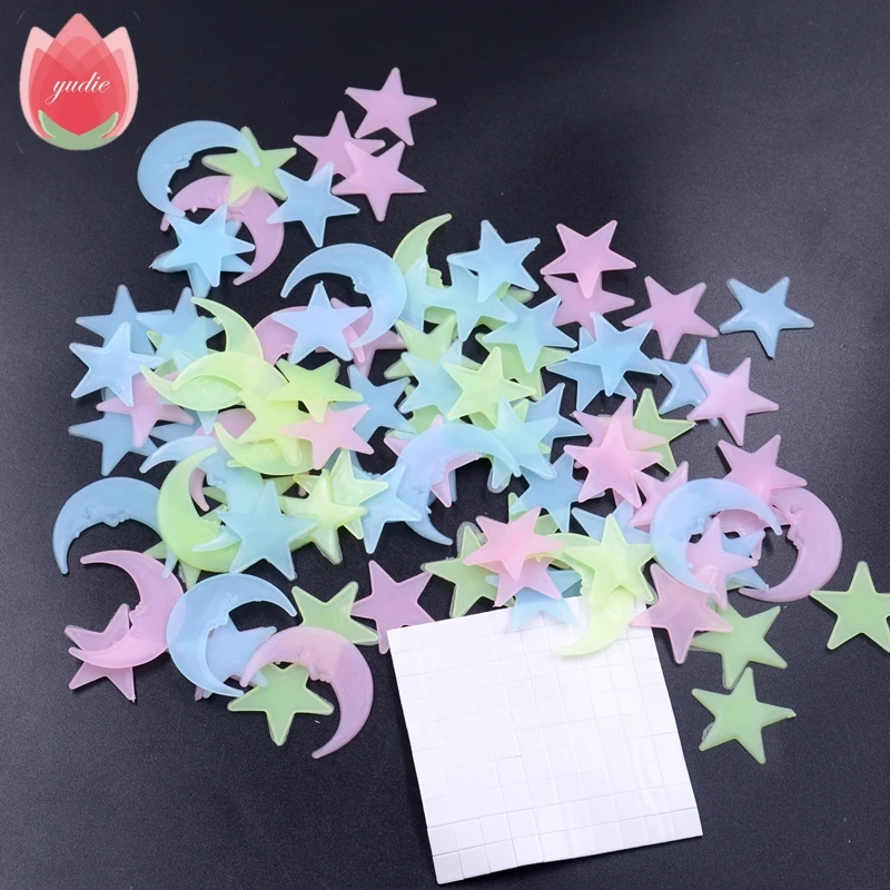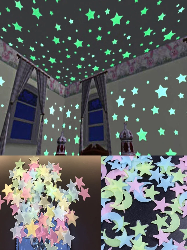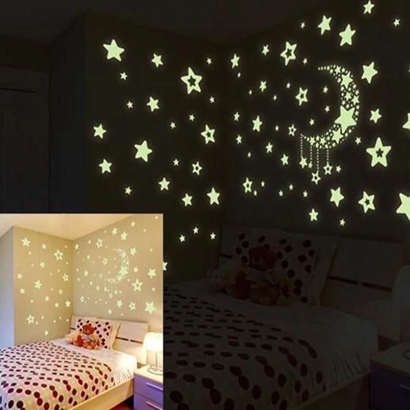 100 шт., флуоресцентные светится в темноте, звезды и луна, Рождество, дети, спальня, настенные наклейки, детские комнаты, украшение дома