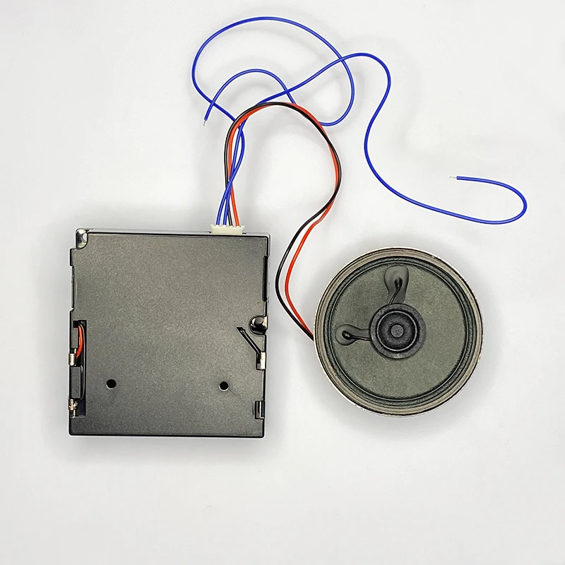 Два черных провода на музыкальном ящике подключаются к динамику,