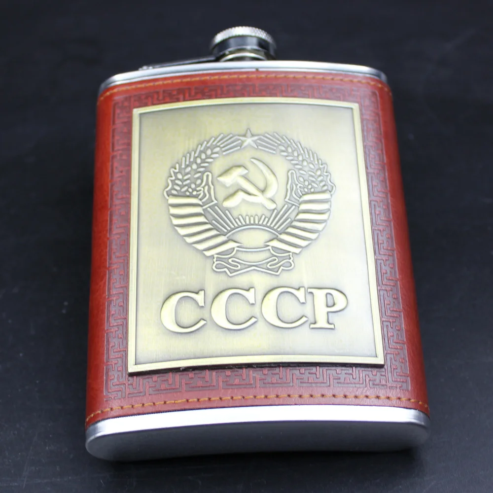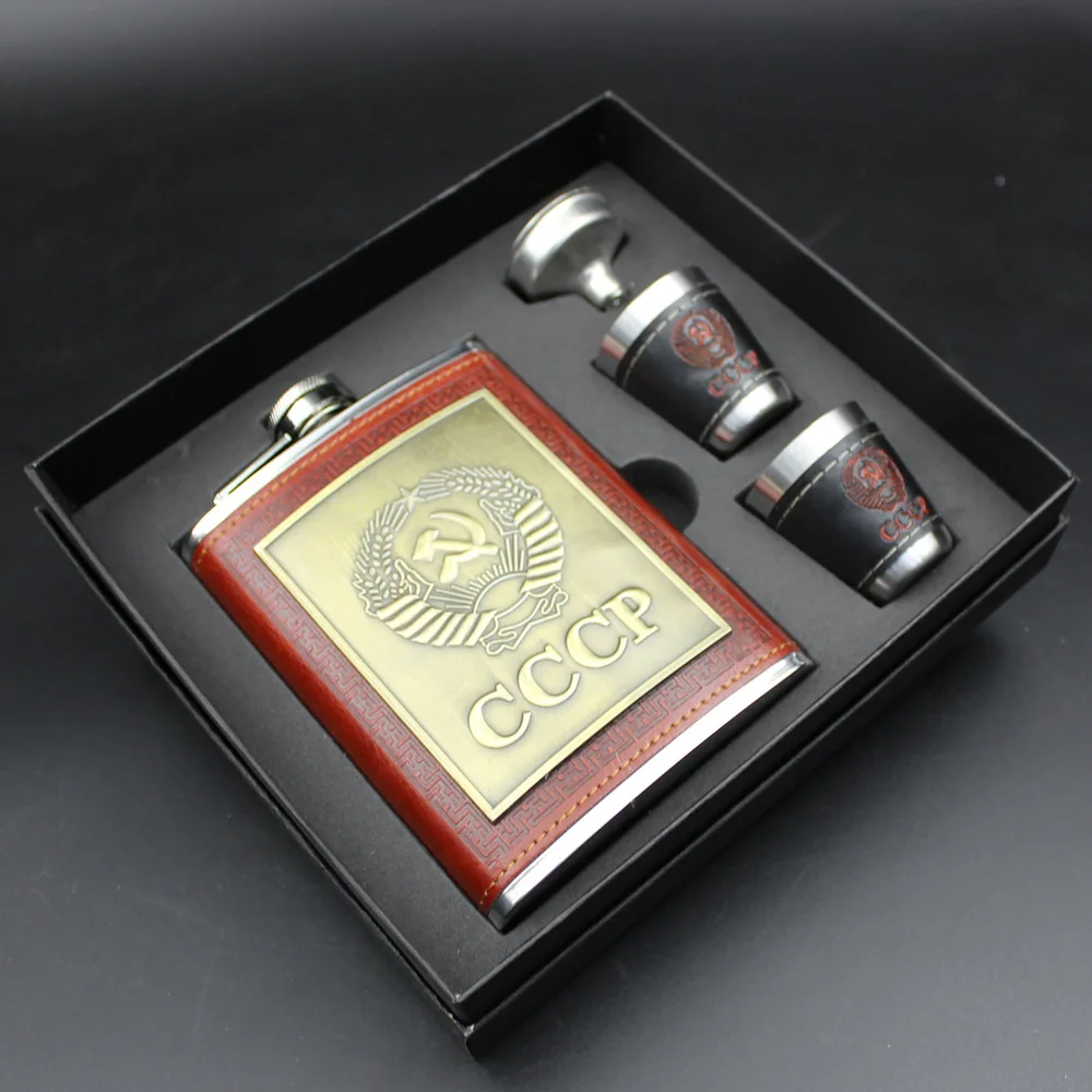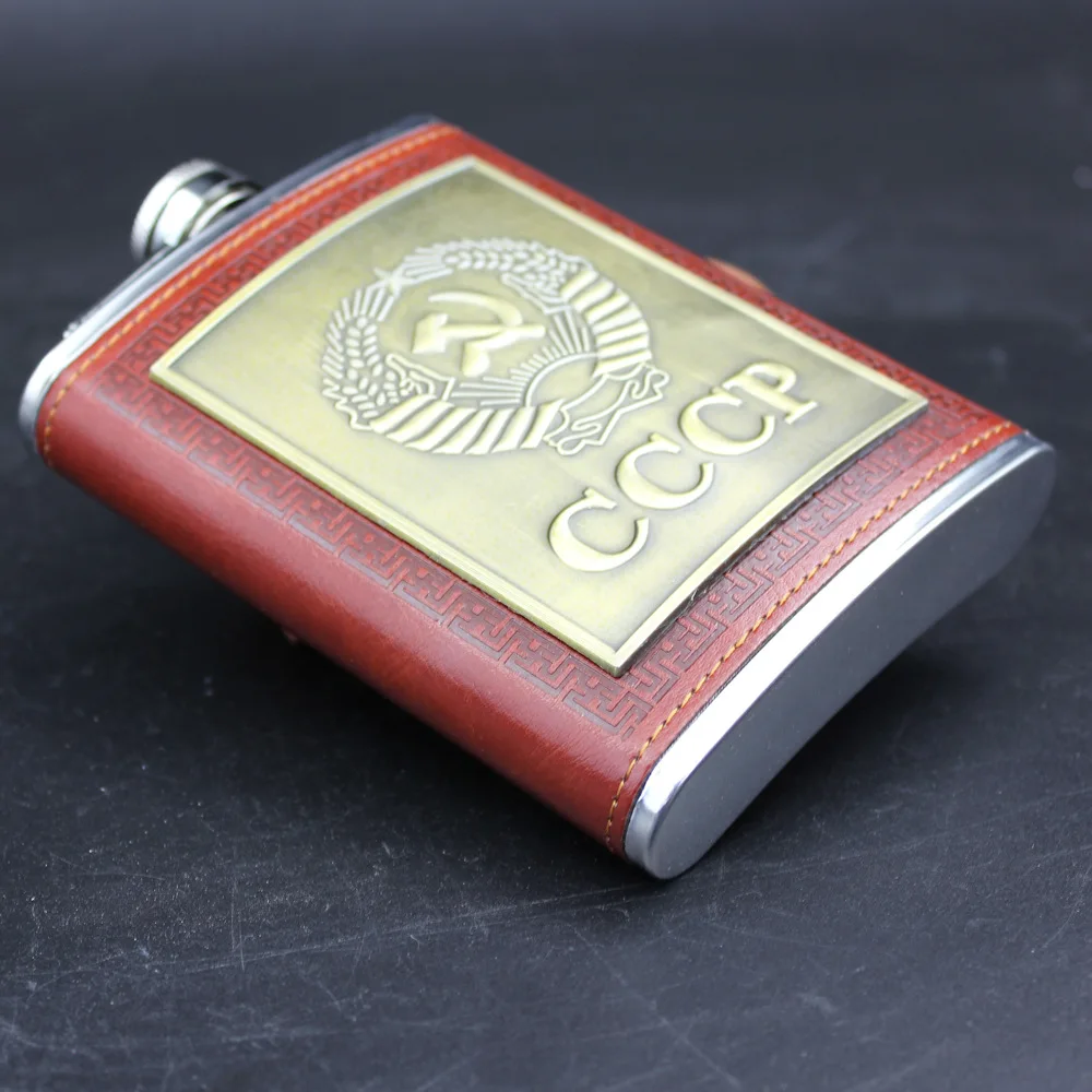 8 унций, роскошная нержавеющая сталь Hip набор фляг из искусственной кожи, стружка, бутылка для виски, вина cccp, карманная спиртовая гравировка, кувшин, подарок