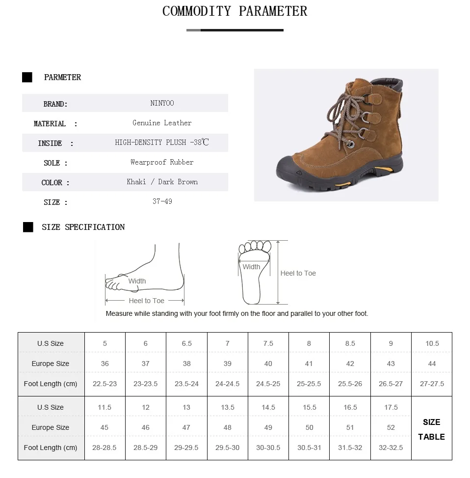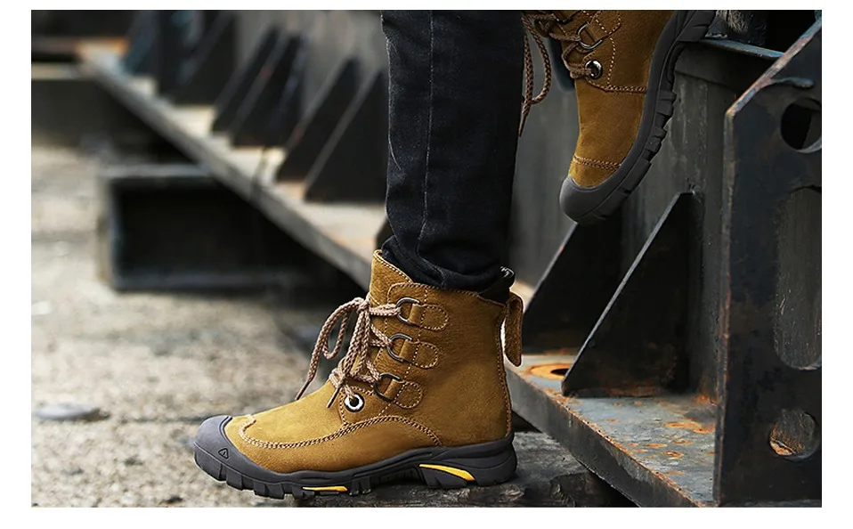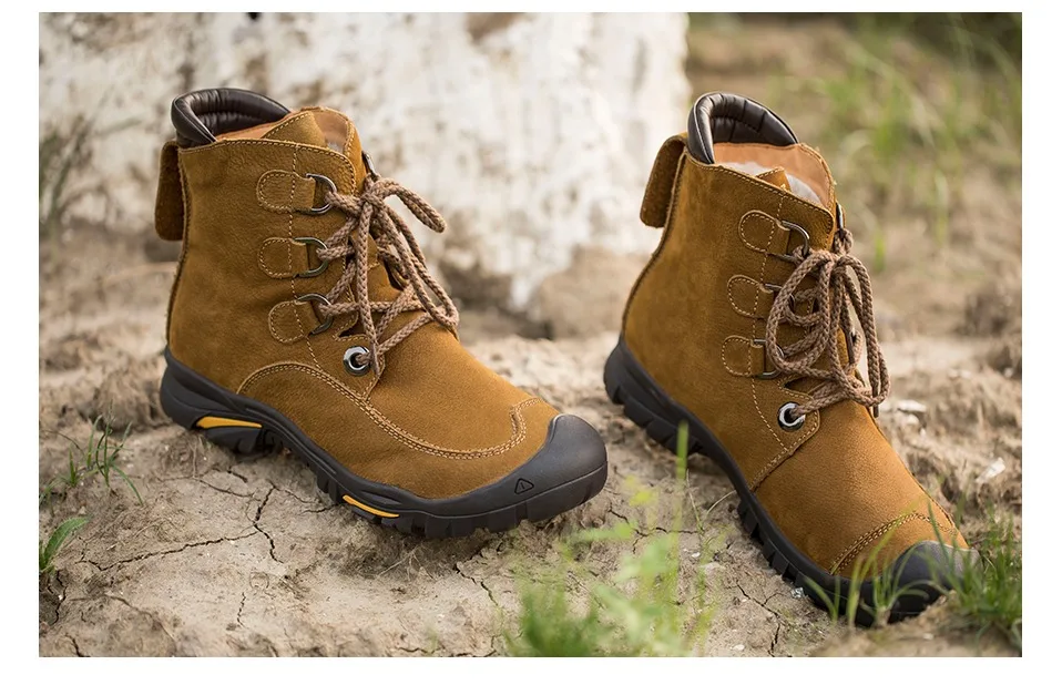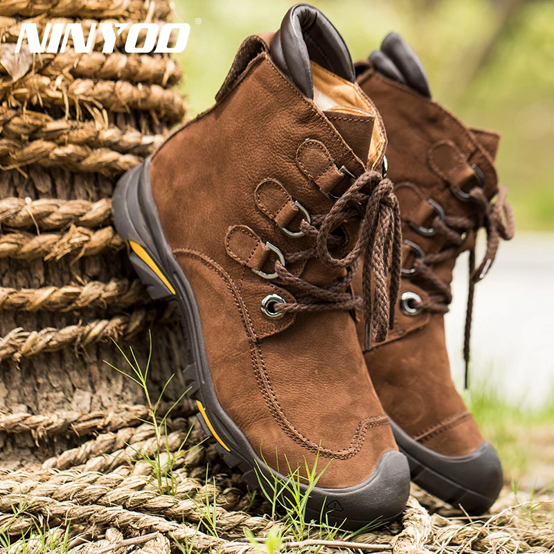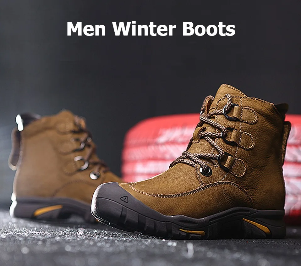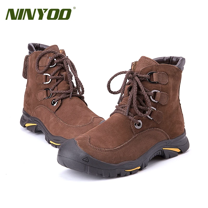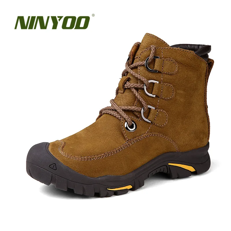 NINYOOизносостойкие мужские зимние ботинки; зимние ботинки из натуральной кожи; Водонепроницаемая уличная зимняя обувь до щиколотки; Мужская обувь против холода; большие размеры 48, 49