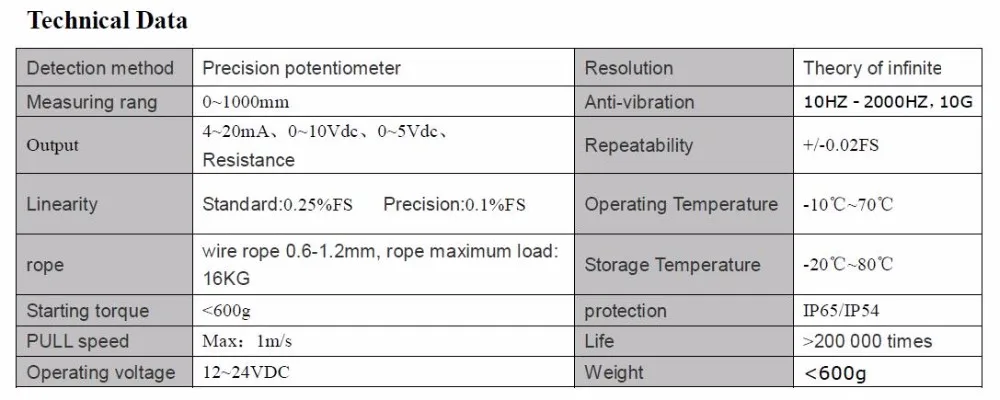 Бесплатная доставка, 1000 мм диапазон, вытяжной провод, датчик перемещения, линейный веревочный энкодер, струнный горшок, Тип потенциометра