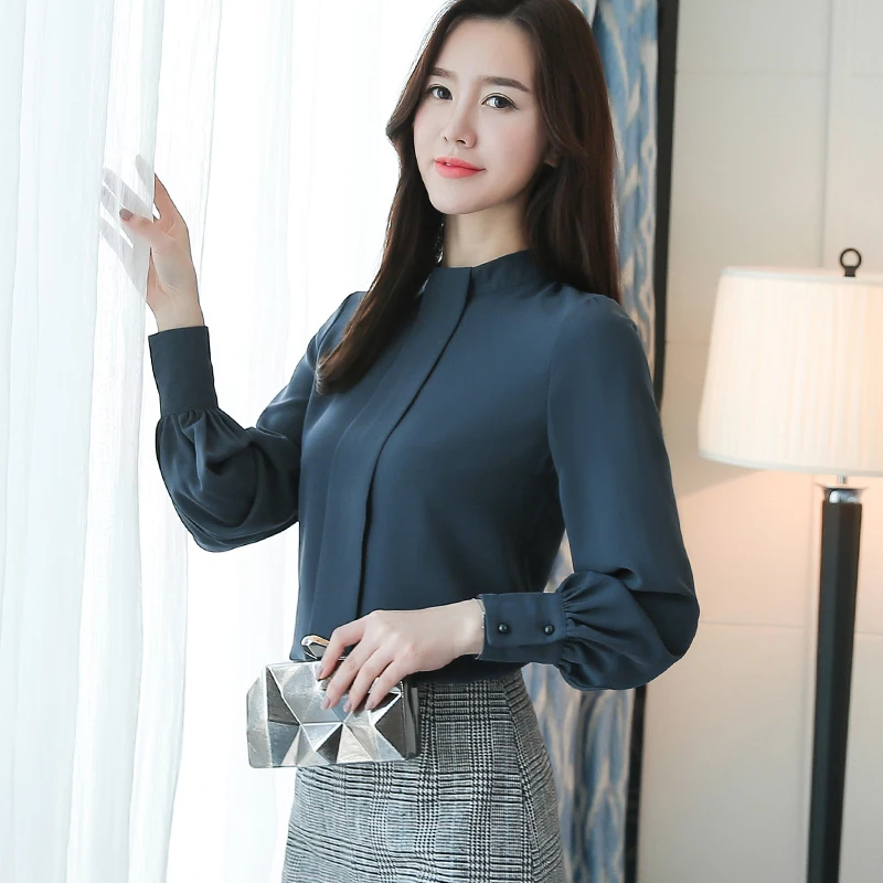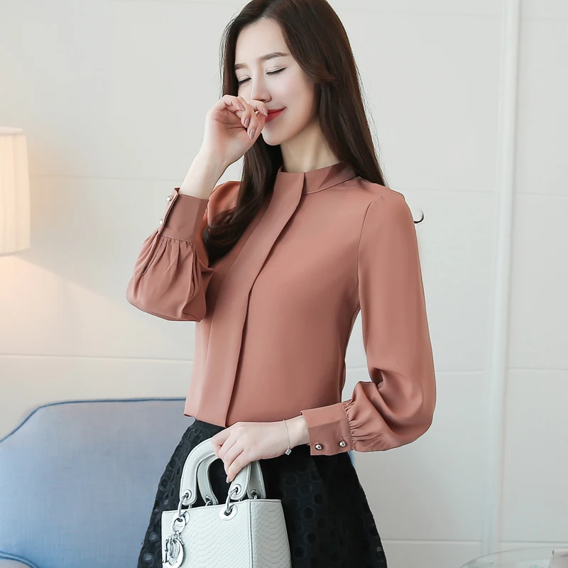 Новинка 2021, Весенняя женская блузка, рубашка с длинным рукавом, модная повседневная женская одежда, однотонная шифоновая одежда, женские топы, блузы D456 30