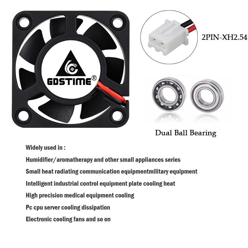 2 шт., Gdstime DC 24 В, 12 В, 5 В, 40 мм x 40 мм x 10 мм, 2-контактный шарикоподшипник, чехол для ПК, вентилятор охлаждения 4010