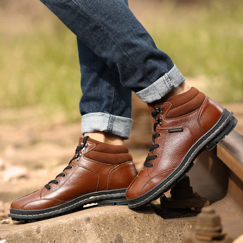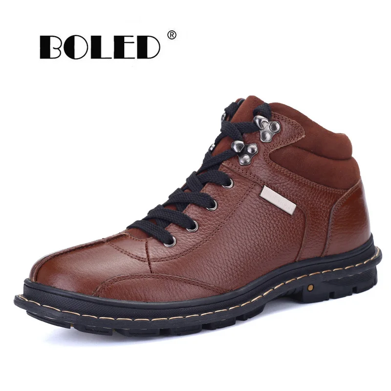 Мужские кожаные ботинки с зернистой поверхностью Новинка Стильные теплые мужские зимние ботинки ручной работы уличные зимние ботинки на шнуровке Прямая поставка
