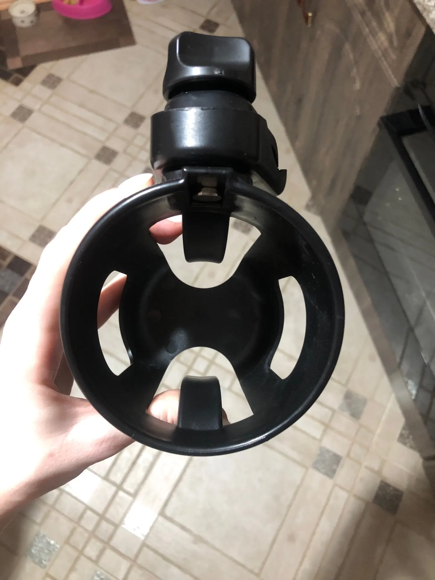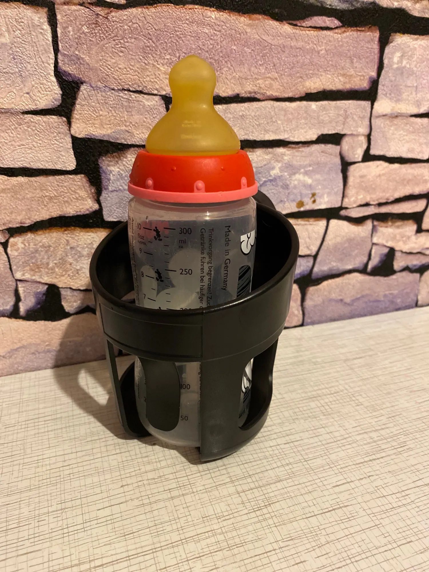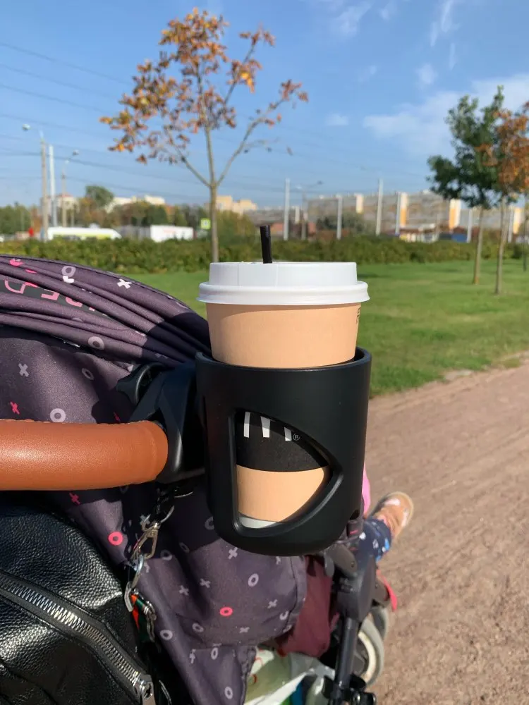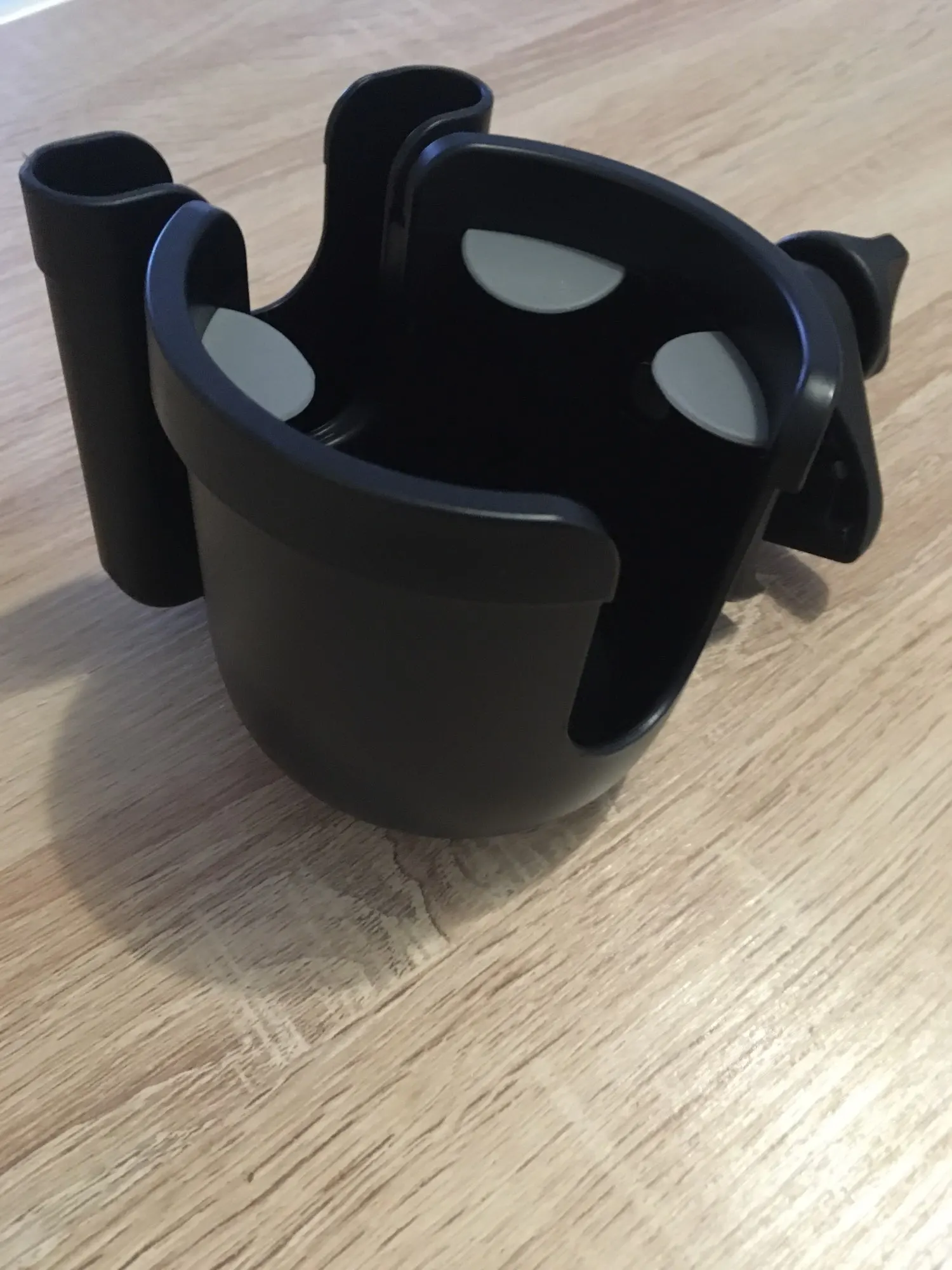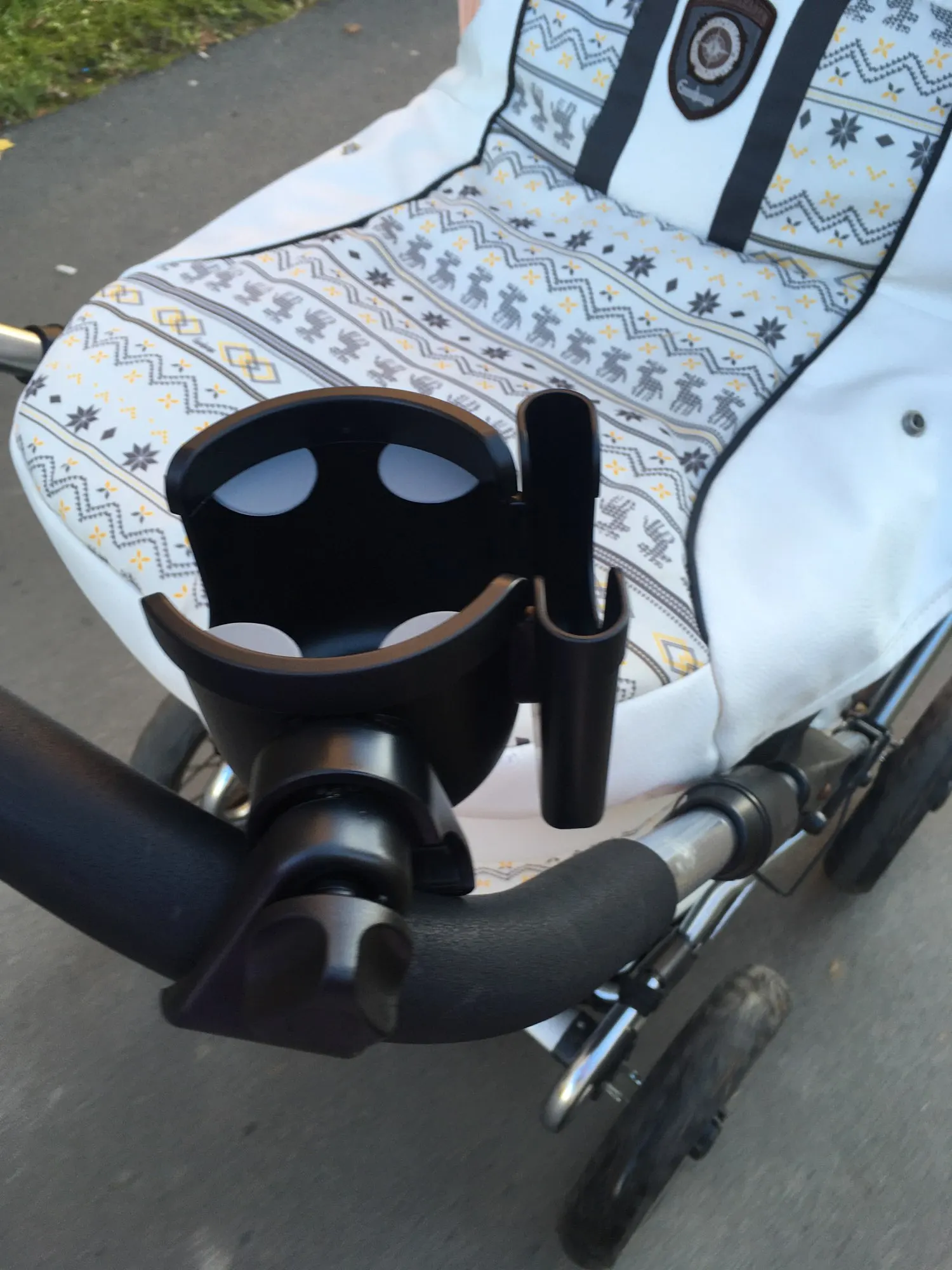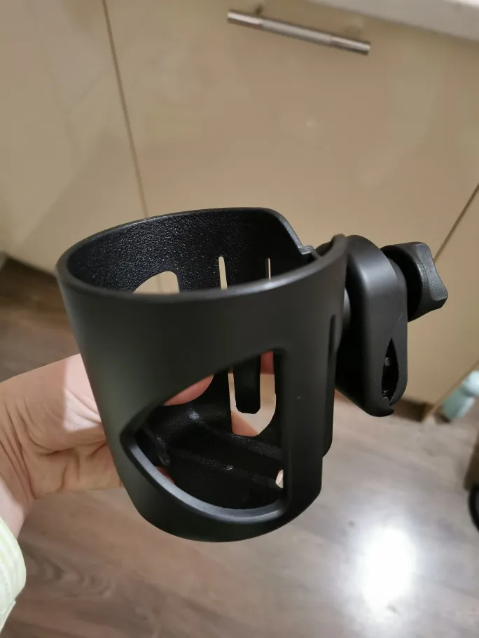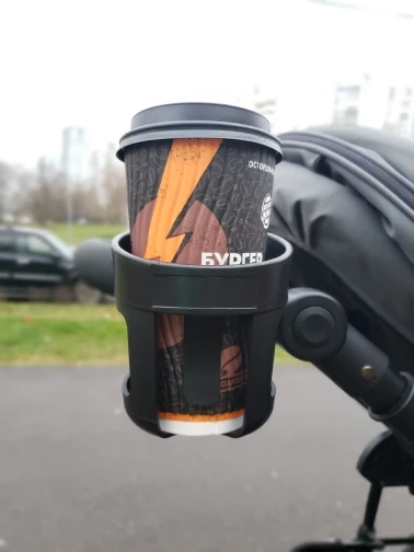 Отличный держатель! Пришёл в пункт выдачи быстро. Муж сразу же прикрепил его на коляску с внутренней стороны (чтобы в маленький лифт коляска прошла). В него влезет и кофе, и бутылка, и стакан-термос. Качество отличное! Рекомендую!
