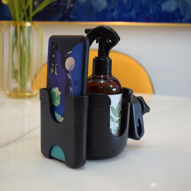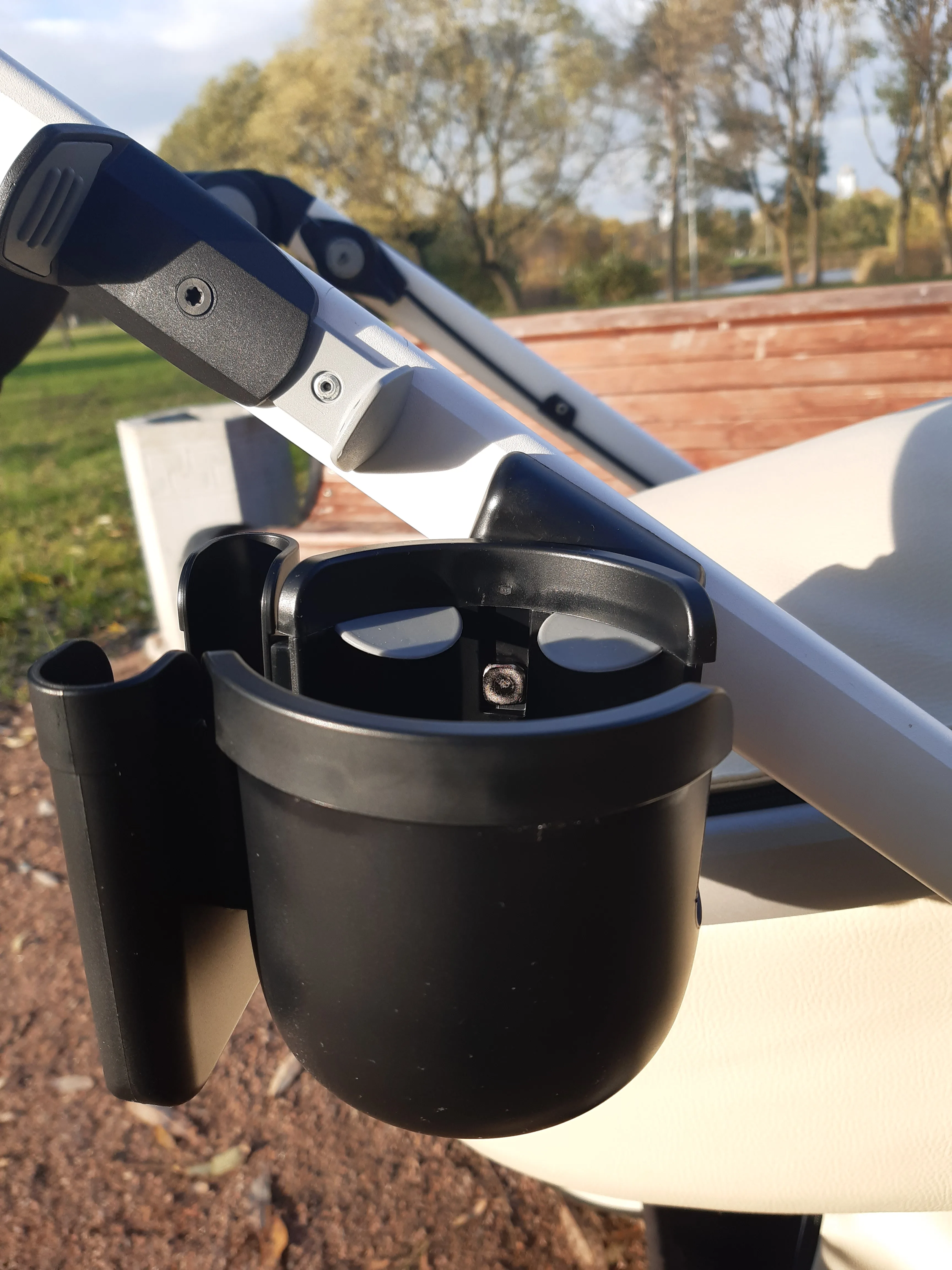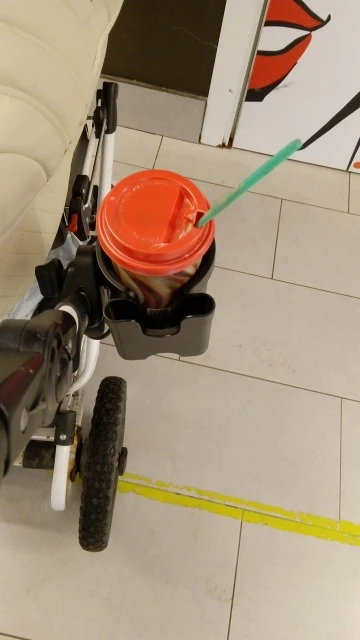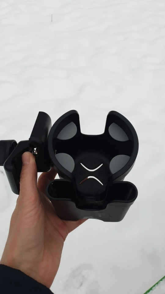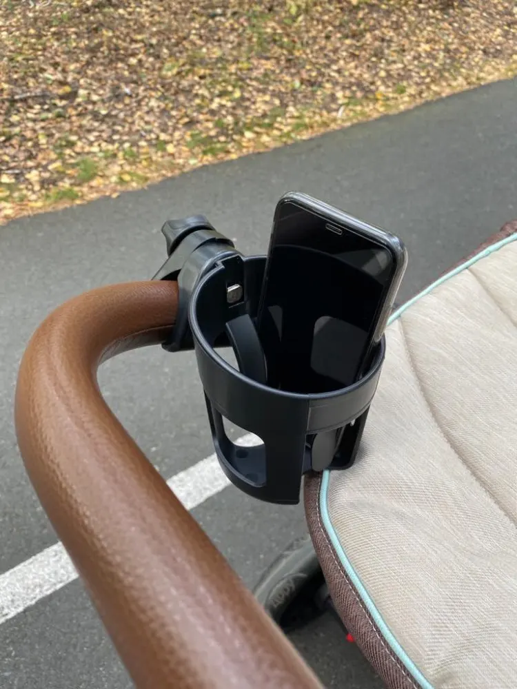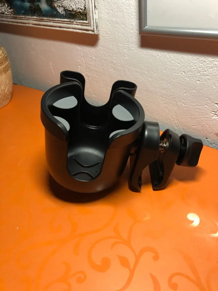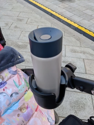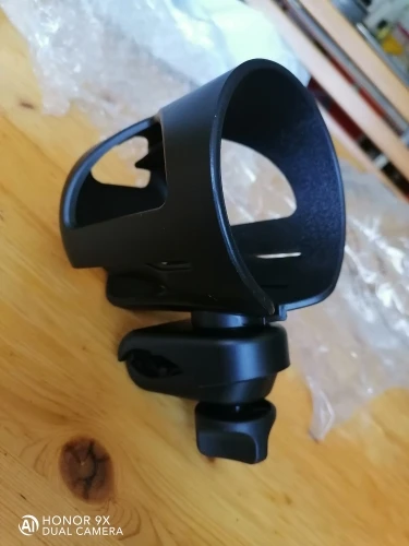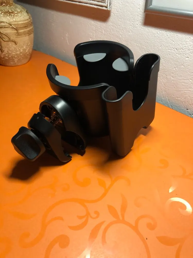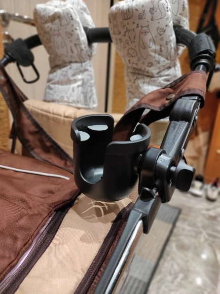 Отличный держатель! Пришёл в пункт выдачи быстро. Муж сразу же прикрепил его на коляску с внутренней стороны (чтобы в маленький лифт коляска прошла). В него влезет и кофе, и бутылка, и стакан-термос. Качество отличное! Рекомендую!