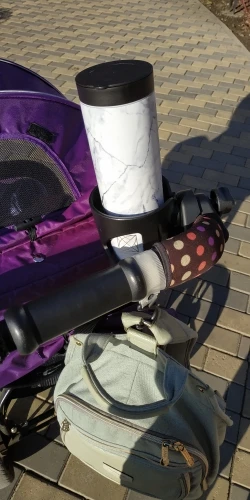 Огромная удобная штука , плотный пластик, точно не разольется . Но на коляску уоуо опасно цеплять, может перечесить:)