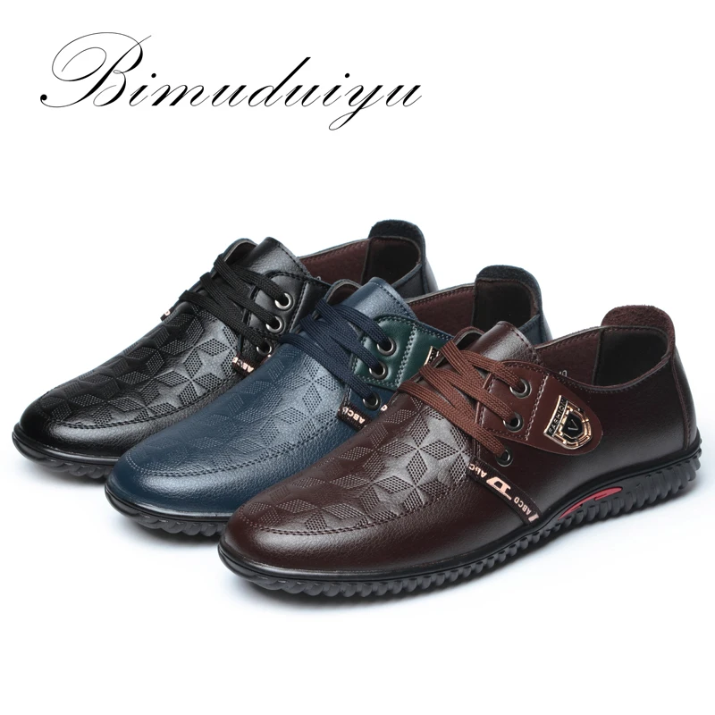 Роскошные дышащие мягкие мужские повседневные кожаные туфли BIMUDUIYU, черные туфли на плоской подошве со шнуровкой, мужские туфли