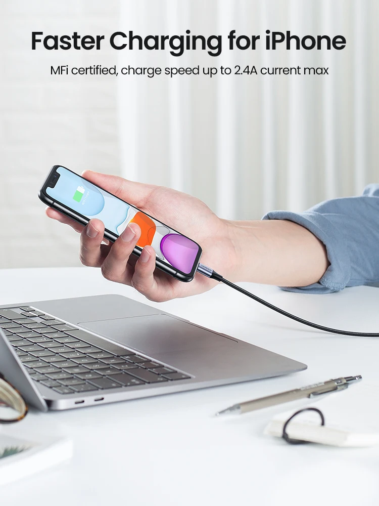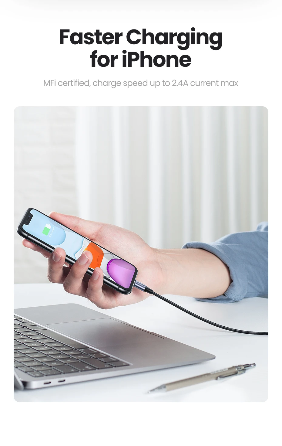 Ugreen 2.4a Lightning MFi USB кабель для iPhone 7 6 5 быстро Зарядное устройство USB кабель для iphone 8X5 5S iPad Ipod зарядки шнур
