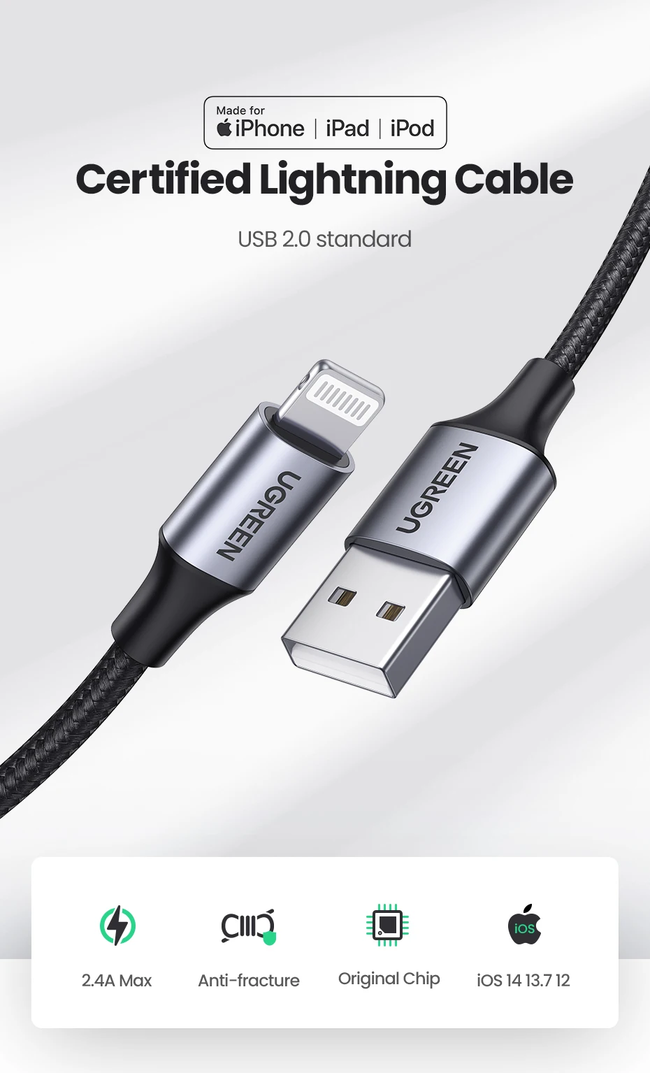 Высококачественный кабель, как обычно, обычный с Ugreen. У него есть сертификат MFi, что-то, что всегда передает спокойствие. Very fast shipping by the seller. Продукт и магазин 100% рекомендуется.