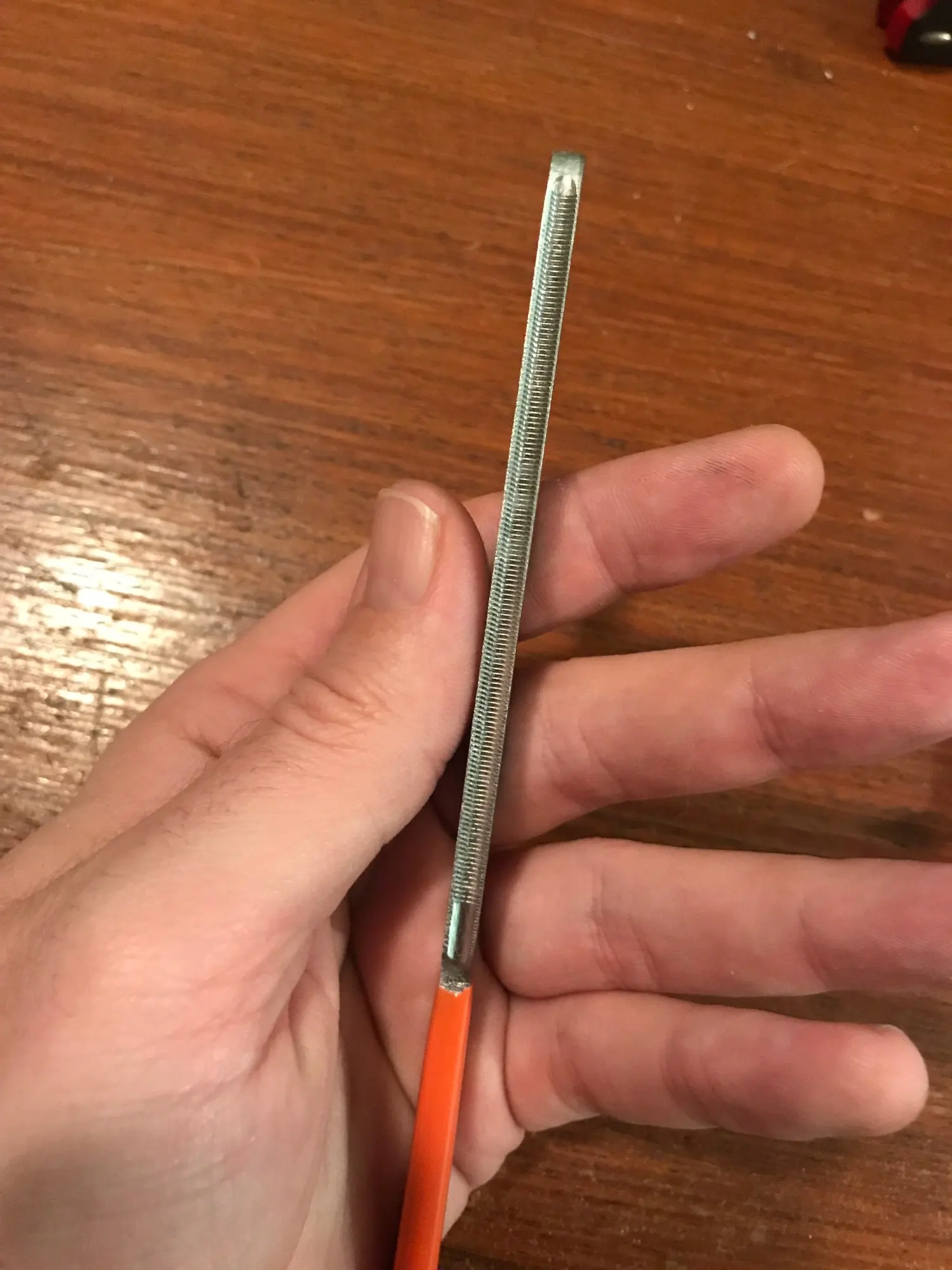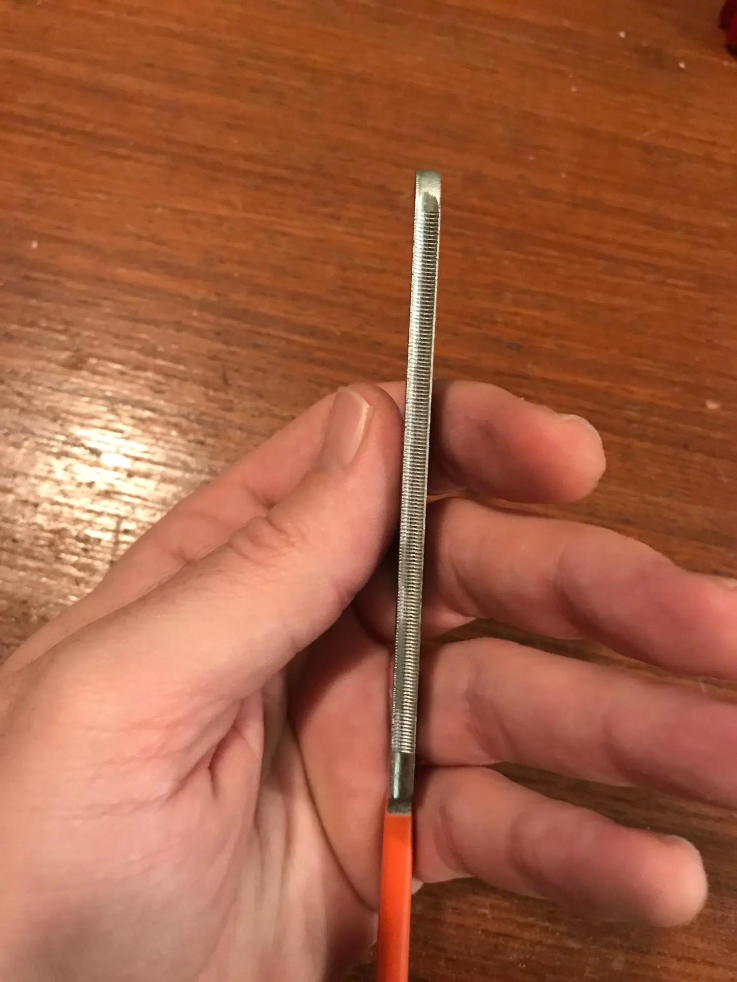 До Москвы меньше трёх недель. Объединили ещё с одним напильником. Этот напильник не каленый, сколько протянет, пока не известно. Обе стороны одинаковые, лучше бы были разные, под разную ширину ладов. Имеет острые заусенцы, надо чуток напильником осадить. Думаю для редкого использования подойдёт. Спасибо !!!