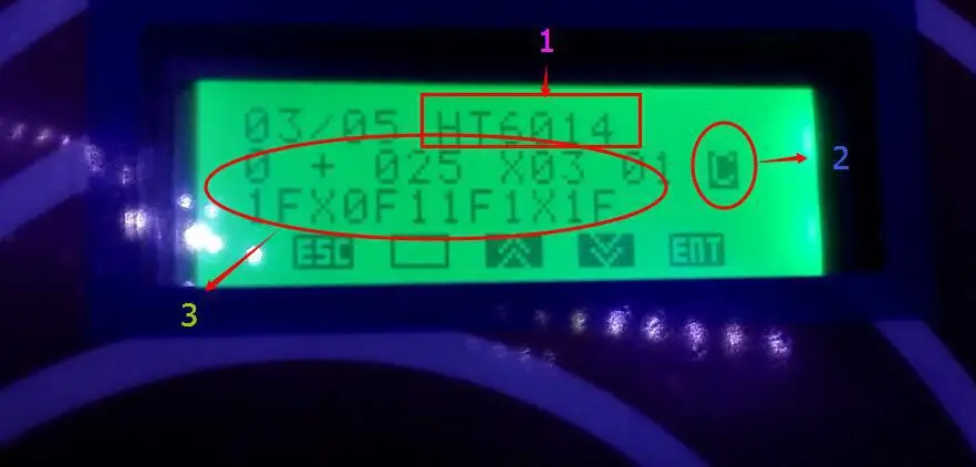 3) регулировка частоты: вернуться к интерфейсу «Удаленная копия», нажмите key4 один раз, чтобы проверить частоту: Поместите оригинальный пульт на машину и нажмите любую клавишу один раз, показывает частоту. Затем поставьте RC A на машину, нажмите key1 один раз, используйте действие неиндуктивного регулятора на белой емкости для регулировки настройки частоты.