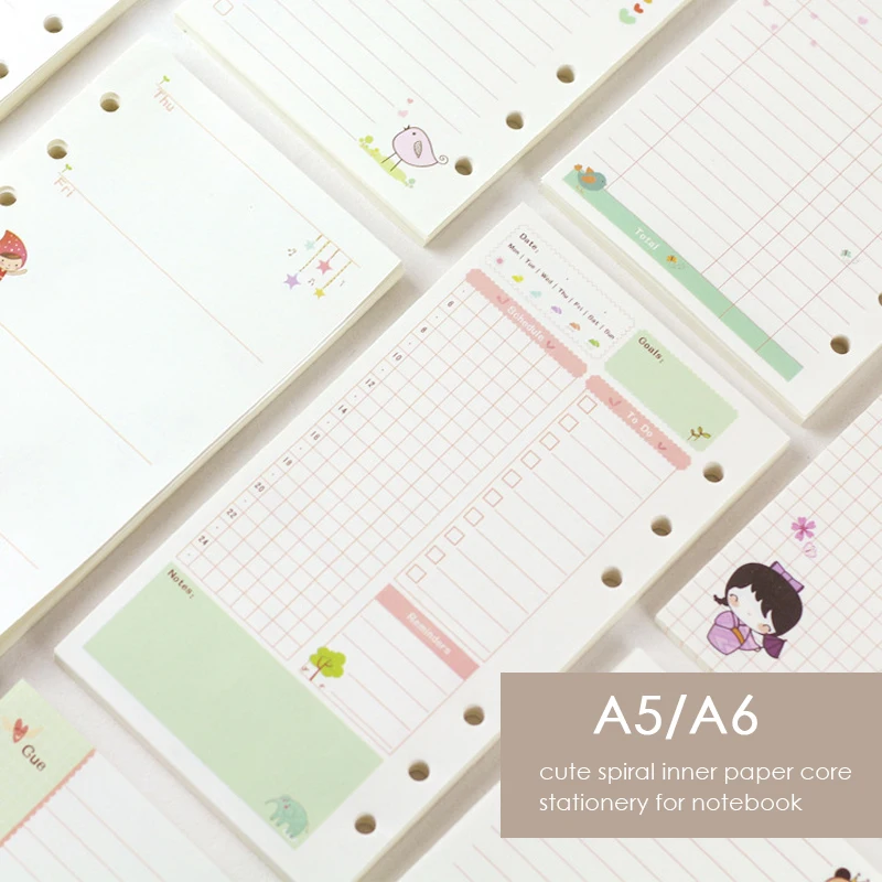 2016 New cute spiral inner paper core stationery for notebook,7 kinds:line,grid,blank,point,to do ,dailymonthweek planner A5A6