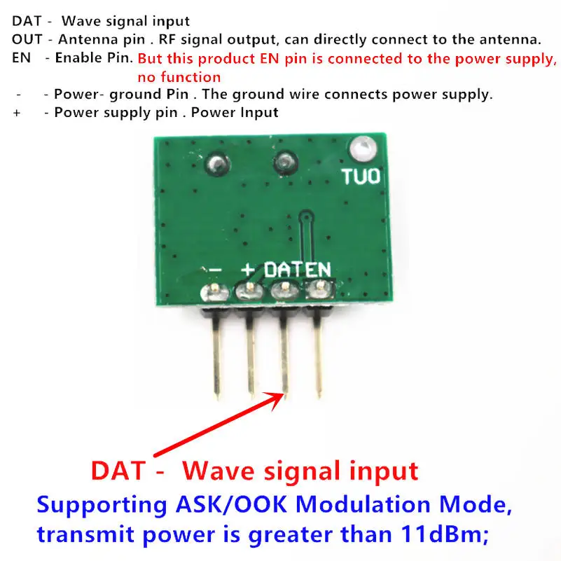 1. Поддержка модуляции ASK / OOK, мощность передачи больше 11 дБм;