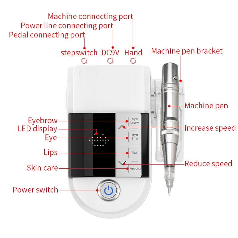 Прост в эксплуатации, быстро окрашивается, не выцветает; Срок службы в два раза дольше, чем у обычных машин для перманентного макияжа.