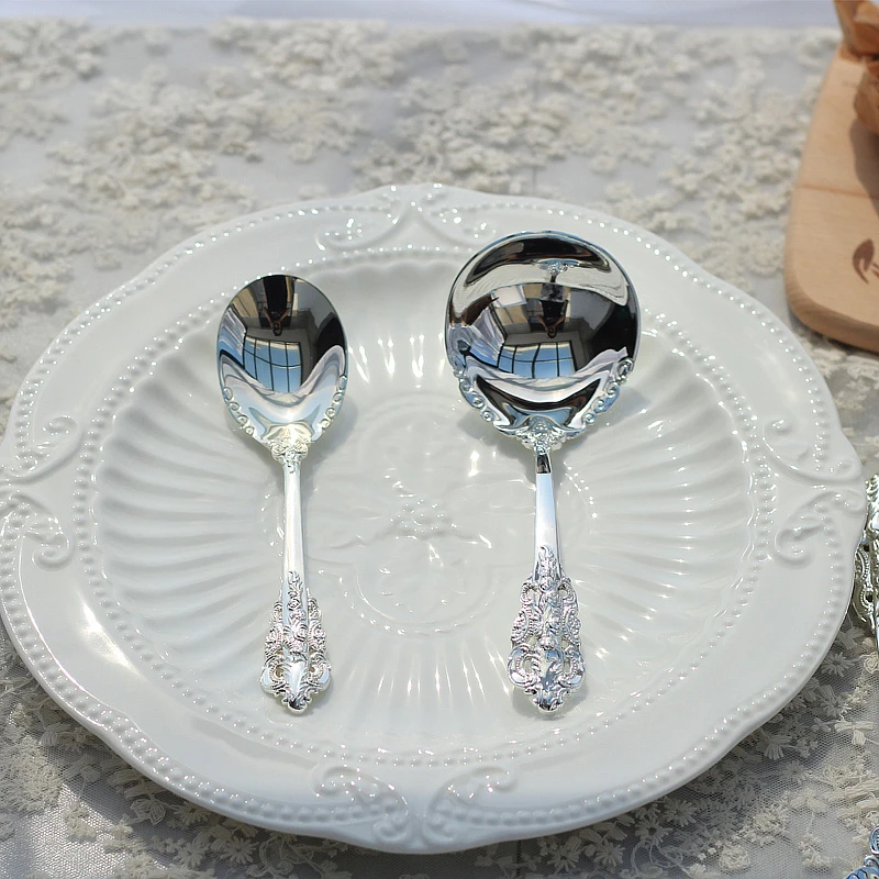 Западная Роскошная ложка для стейка, нож, вилка, покрытые серебряные столовые приборы, разные размеры, креативная элегантная Ретро серебряная посуда