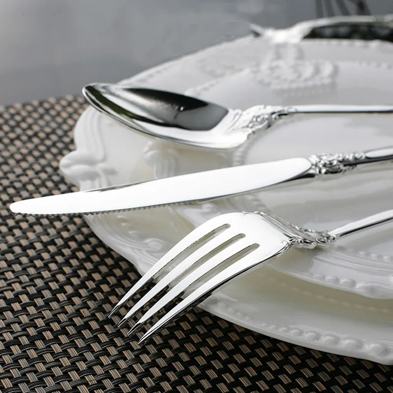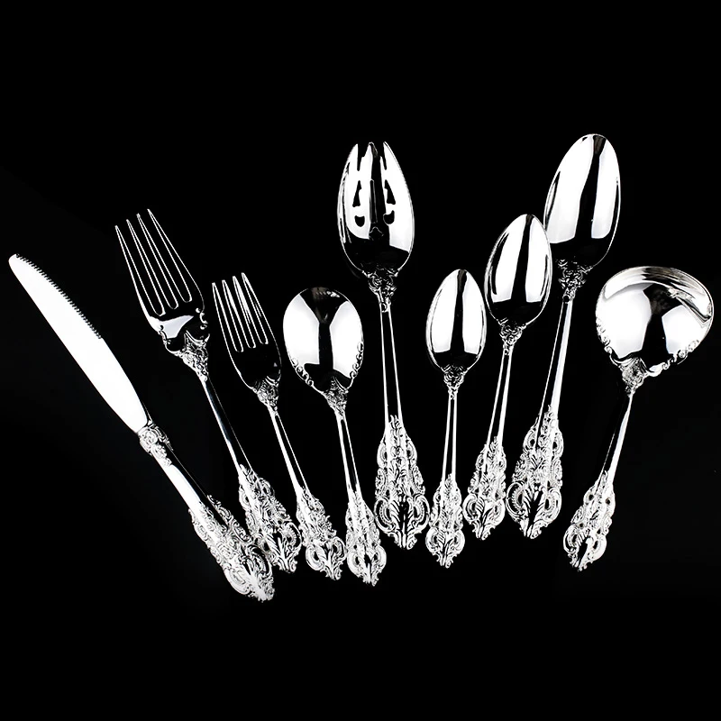 10 шт.компл. Роскошные столового серебра для свадьбы набор посуды, элегантное, в ретро стиле, рождественские столовые приборы стол Ножи вилка ложка чайная серебряные столовые приборы