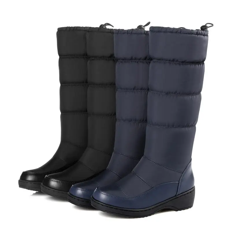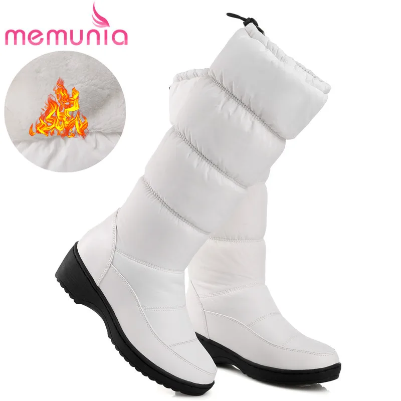 Женские зимние сапоги MEMUNIA, теплые сапоги до колена из искусственной кожи с закругленным носком и толстым мехом, новинка 2019