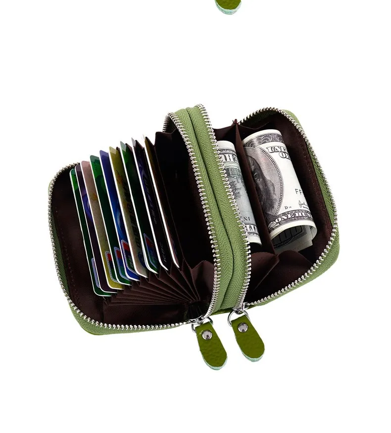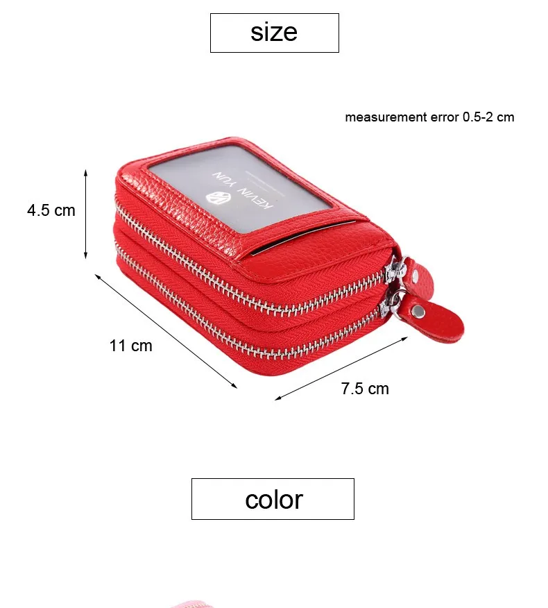 Модный брендовый женский футляр для удостоверения личности из натуральной кожи с двойной молнией, Дамский Футляр для кредитных карт, вместительный кошелек