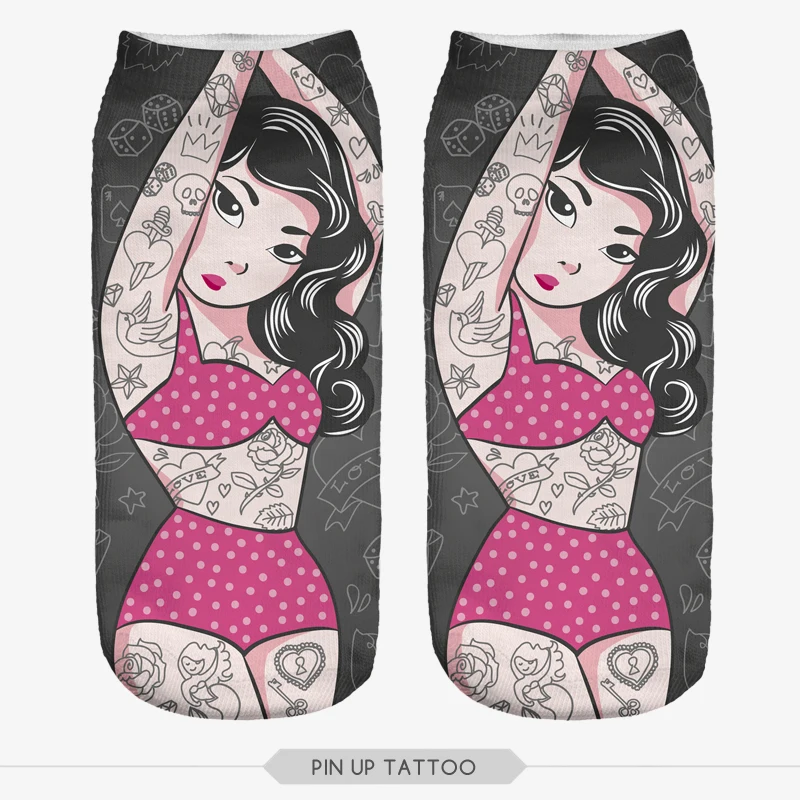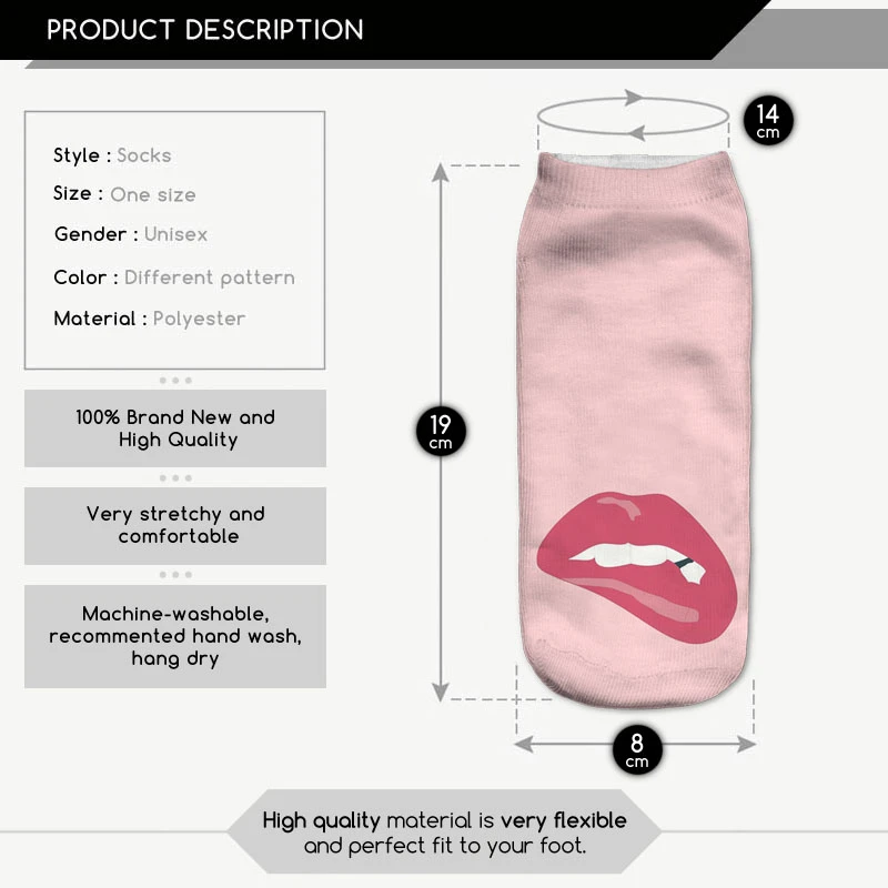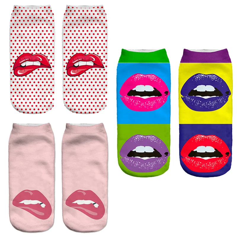 Женские носки до щиколотки, с 3D изображением губ, с ярким принтом