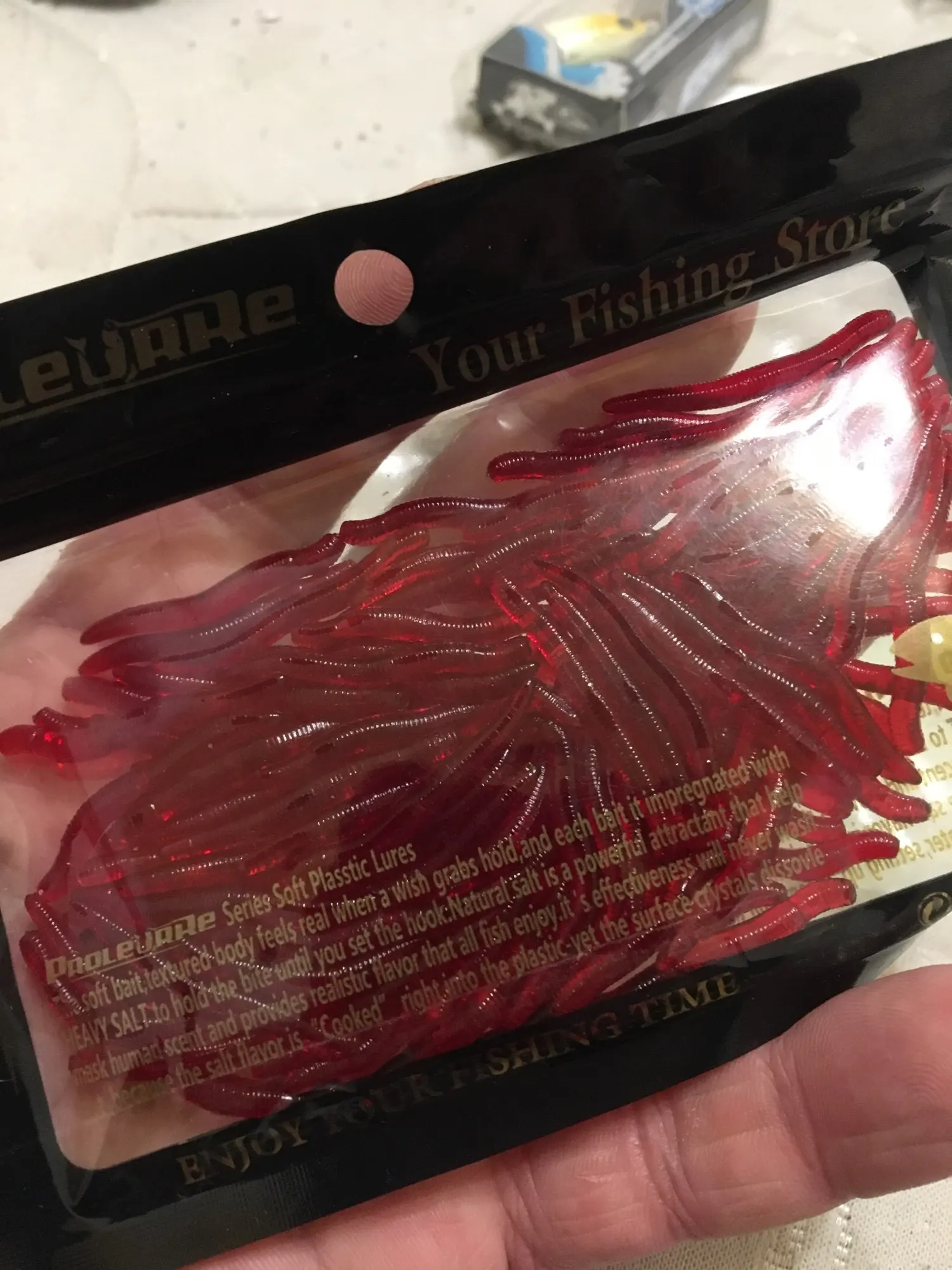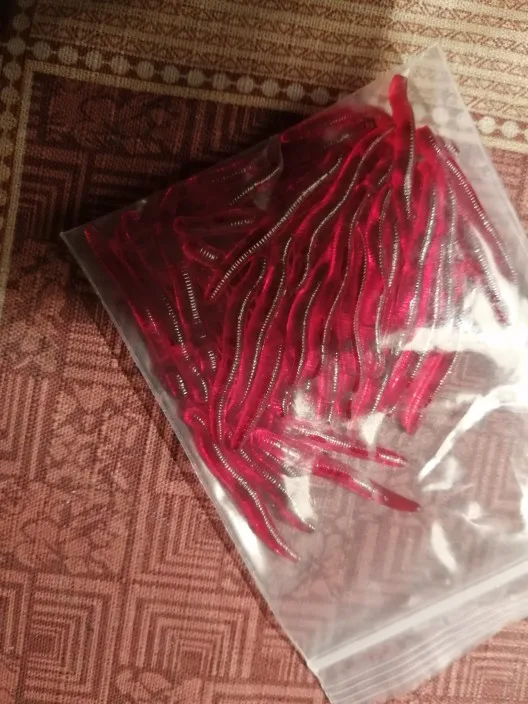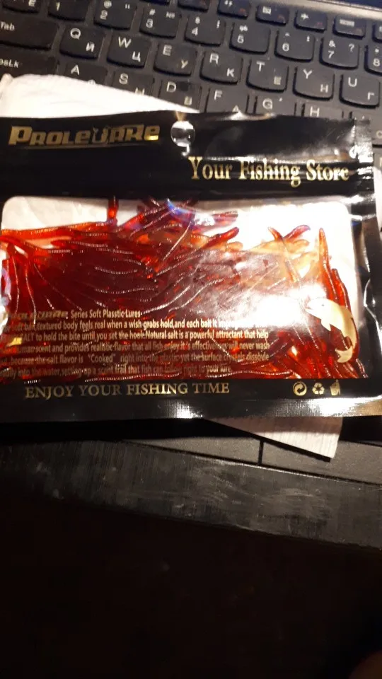 сам не рыбак , брал в подарок. сразу скажу на картинке гораздо больше чем на самом деле особенно воблеры. рыбный запах присутствует , крючки острые хорошие , на червей говорят берет лучше чем на живых. в цулом достаточно качественный товар.