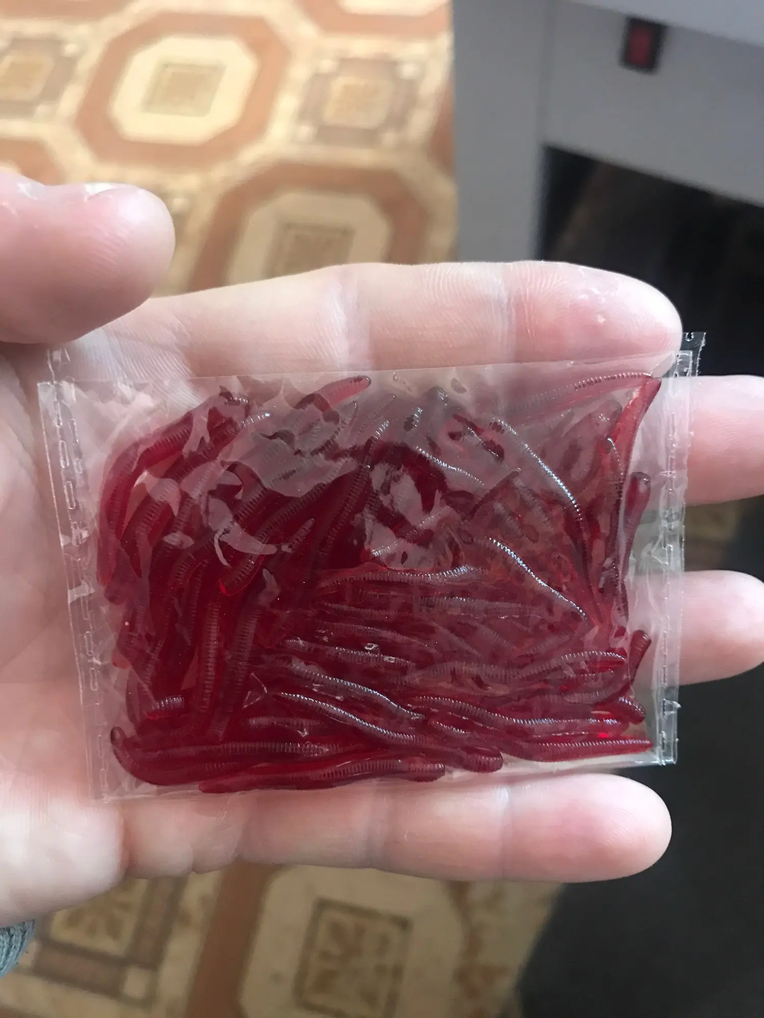 Рыболовные приманки, 50 или 100 шт.партия, бионические красные черви, мягкие, с запахом креветок, 3,5 см, с солью, силиконовые, искусственные, для ловли карпа, окуня