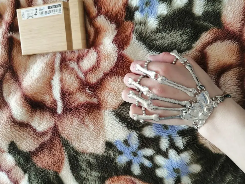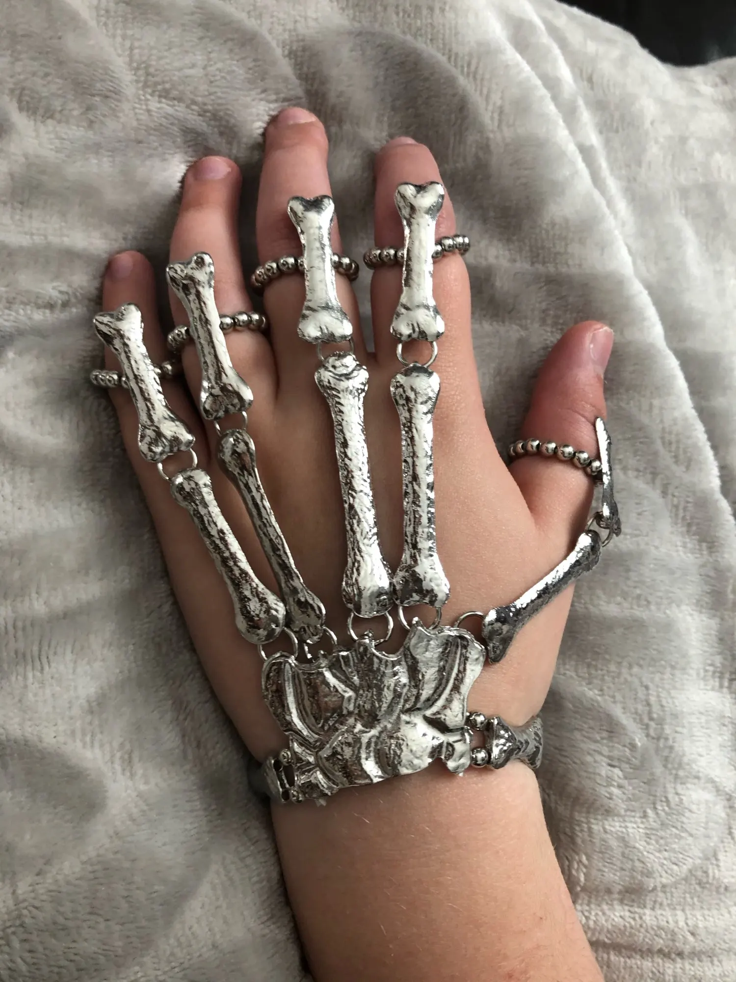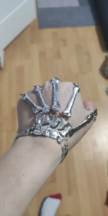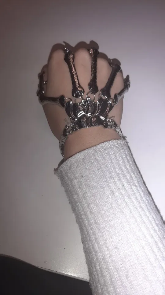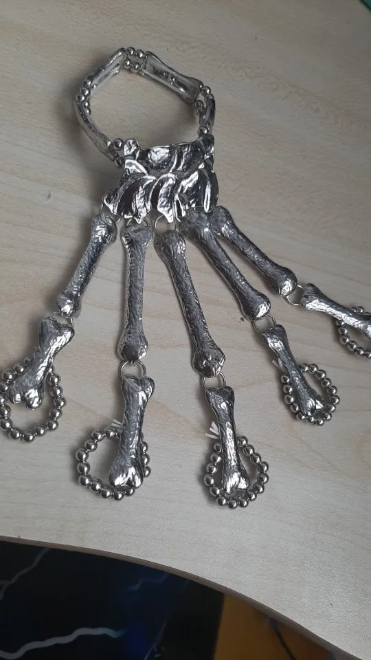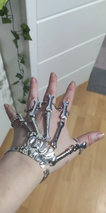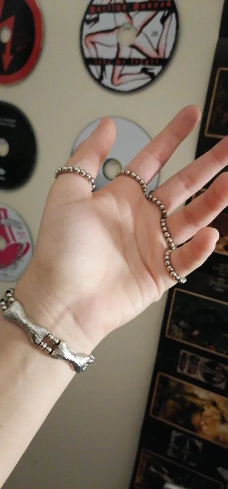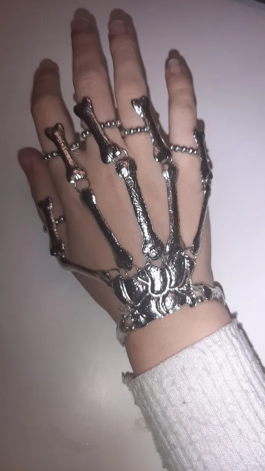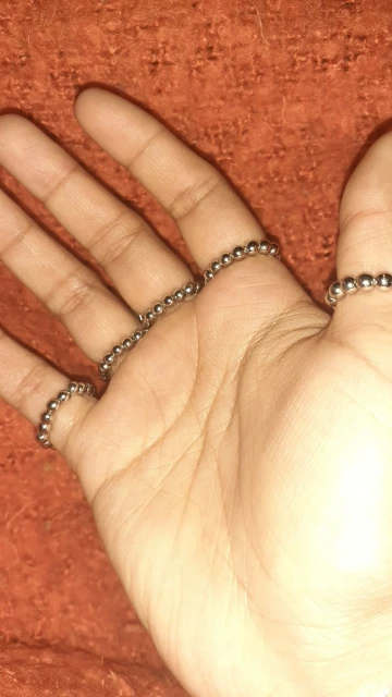 Кольца растягиваются так, что вы можете надеть их, но в какой-то момент они начинают задыхаться пальцами, но это ожидалось. Металл тонкий, но достаточно прочный, поэтому я рекомендую вам быть внимательными, так как это на ваших руках, которые мы много двигаемся (вы не хотите, чтобы кольца, которые соединяют пальцевые кости к косточке запястья, сломались!) цвет соответствует обещанию. Мои ногти маленькие (даже накладные ногти на одежде подходят), поэтому мои руки тоже маленькие. Я надеюсь, что это хорошая информация для вас, если у вас есть маленькие руки. Они мне подходят! Не выбирайте общаться с продавцом