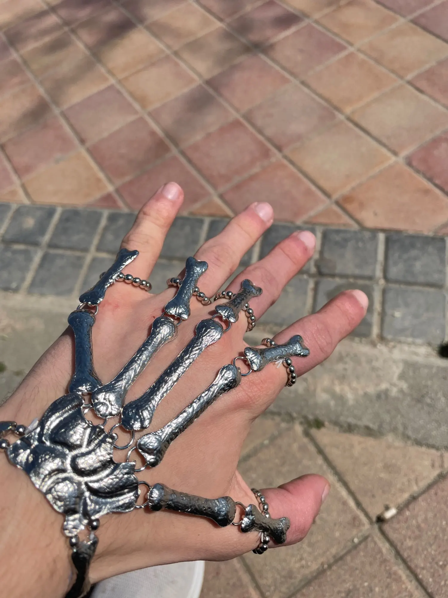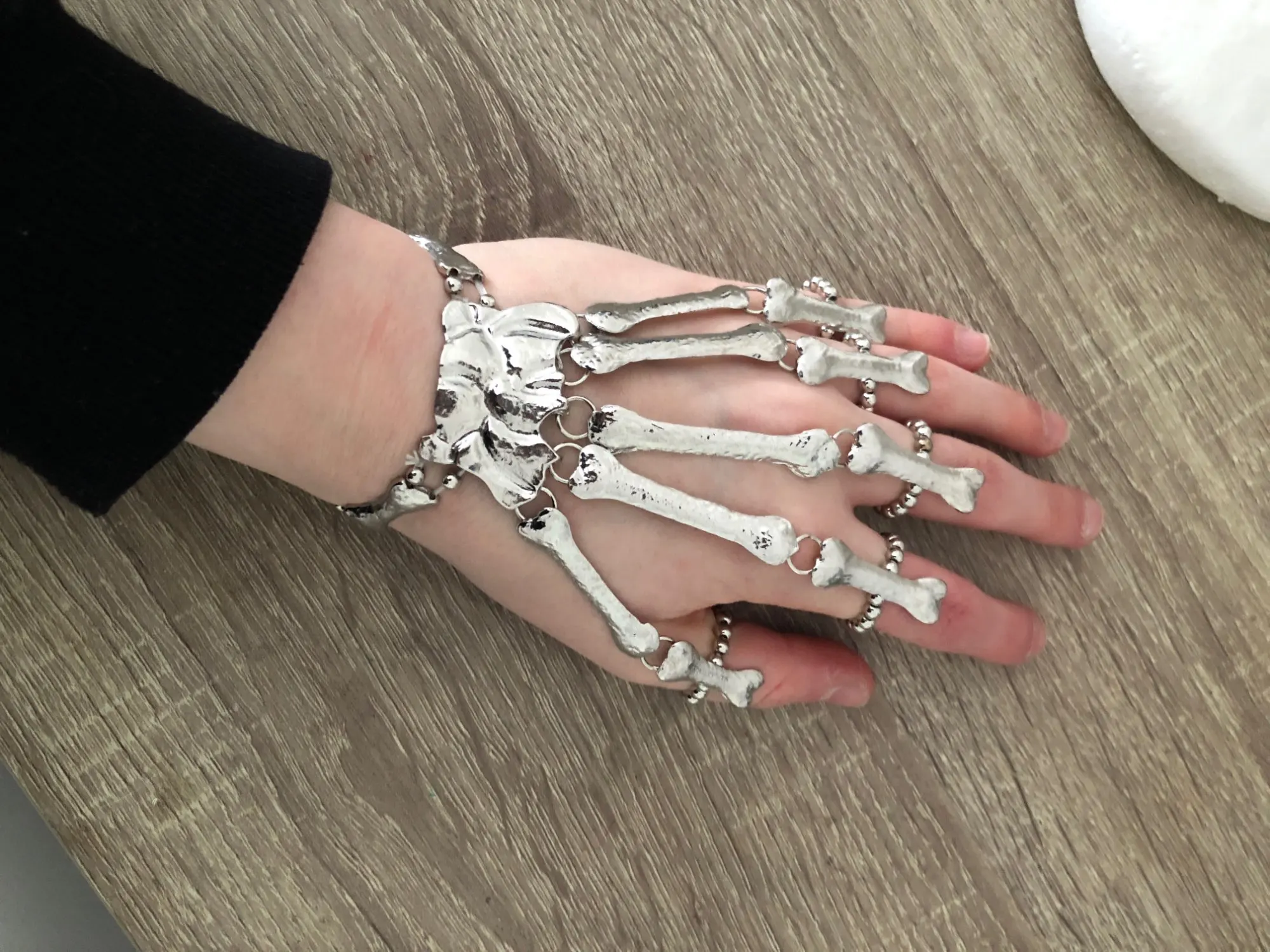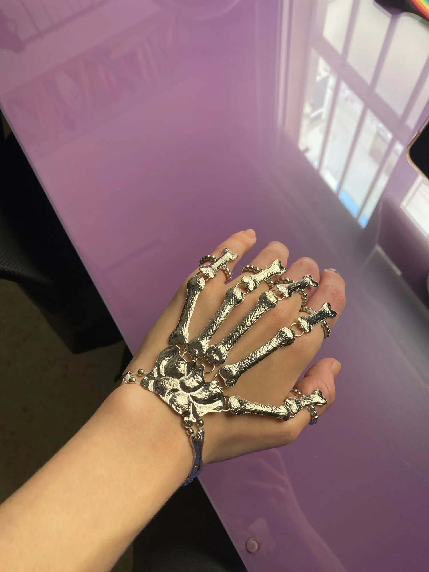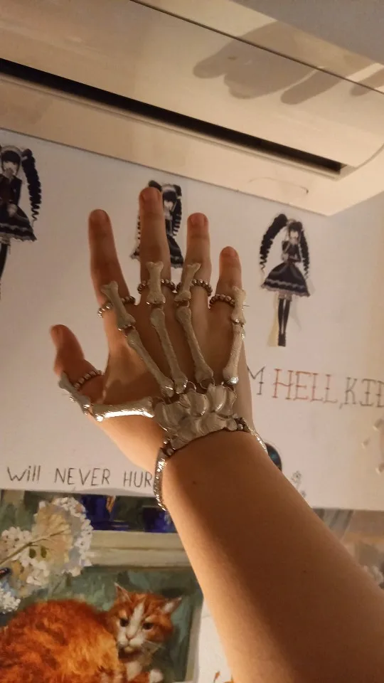Кольца растягиваются так, что вы можете надеть их, но в какой-то момент они начинают задыхаться пальцами, но это ожидалось. Металл тонкий, но достаточно прочный, поэтому я рекомендую вам быть внимательными, так как это на ваших руках, которые мы много двигаемся (вы не хотите, чтобы кольца, которые соединяют пальцевые кости к косточке запястья, сломались!) цвет соответствует обещанию. Мои ногти маленькие (даже накладные ногти на одежде подходят), поэтому мои руки тоже маленькие. Я надеюсь, что это хорошая информация для вас, если у вас есть маленькие руки. Они мне подходят! Не выбирайте общаться с продавцом