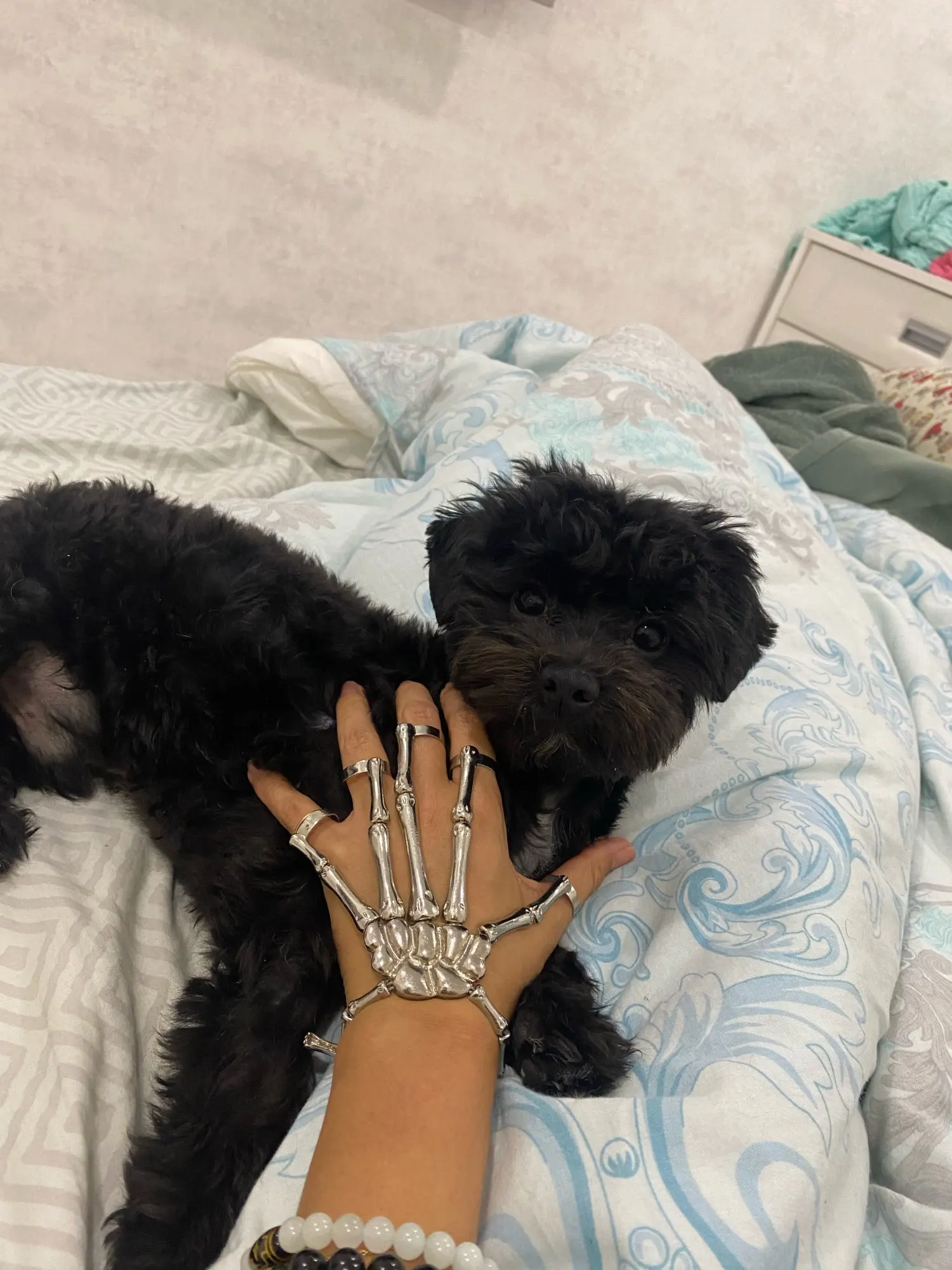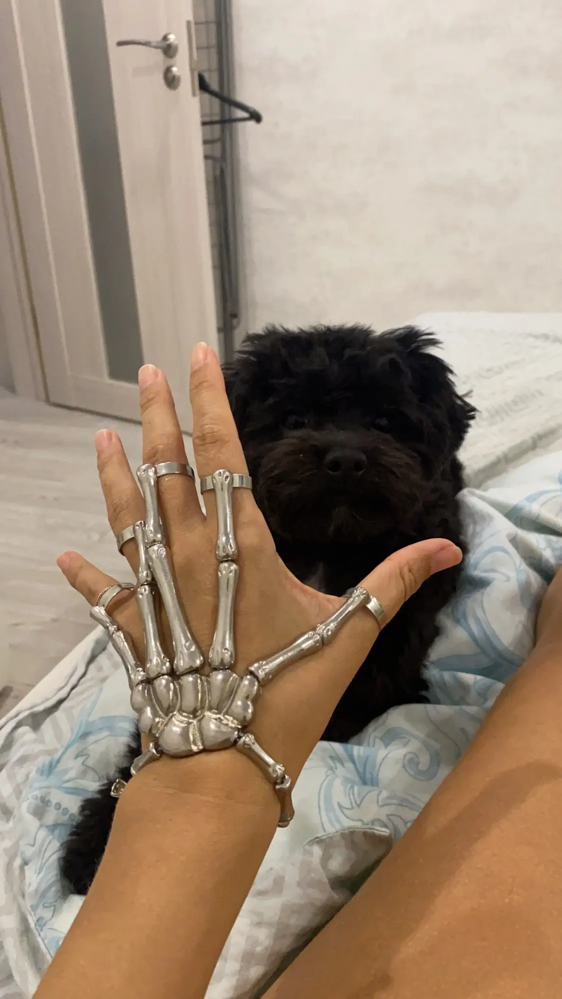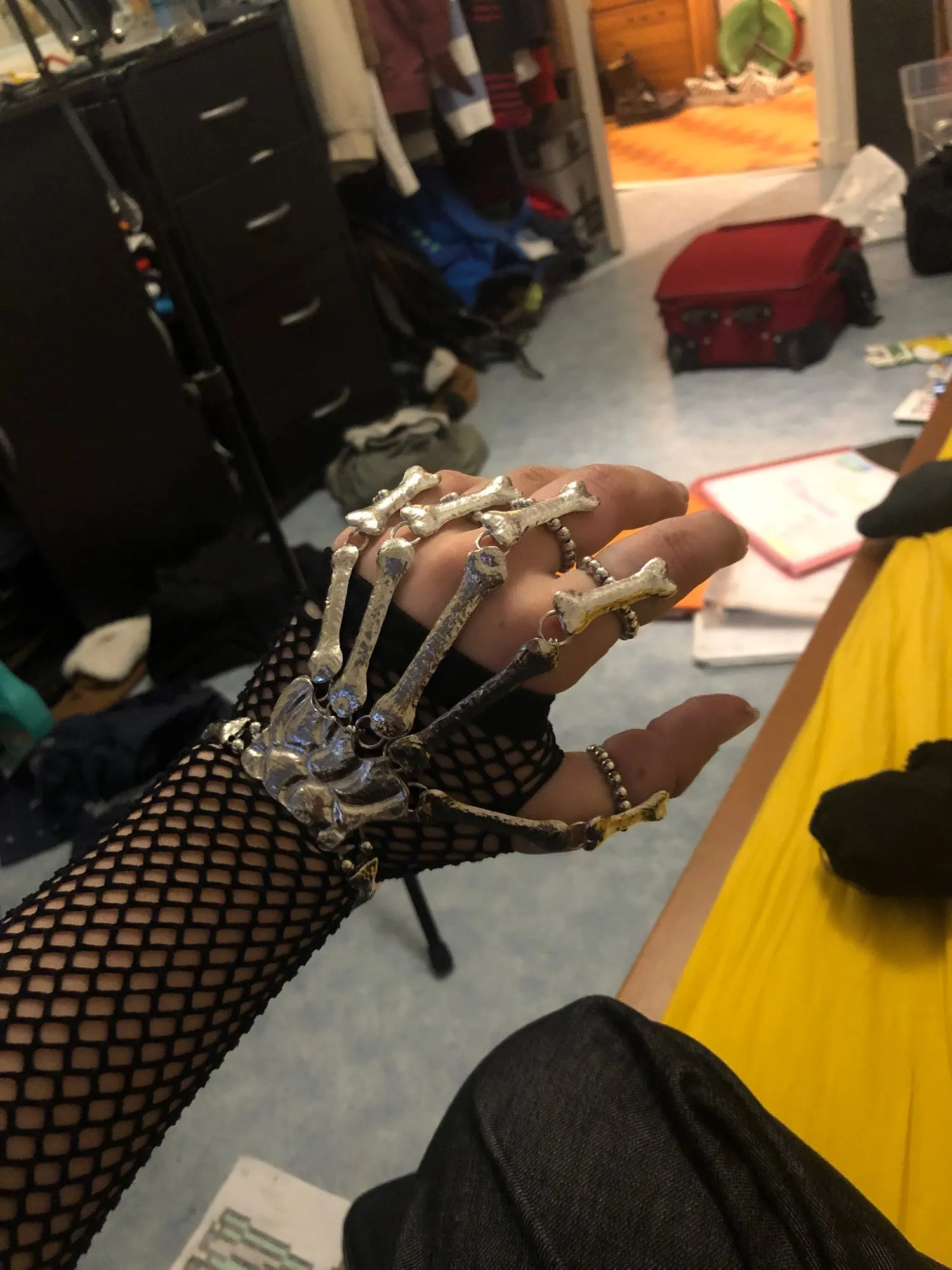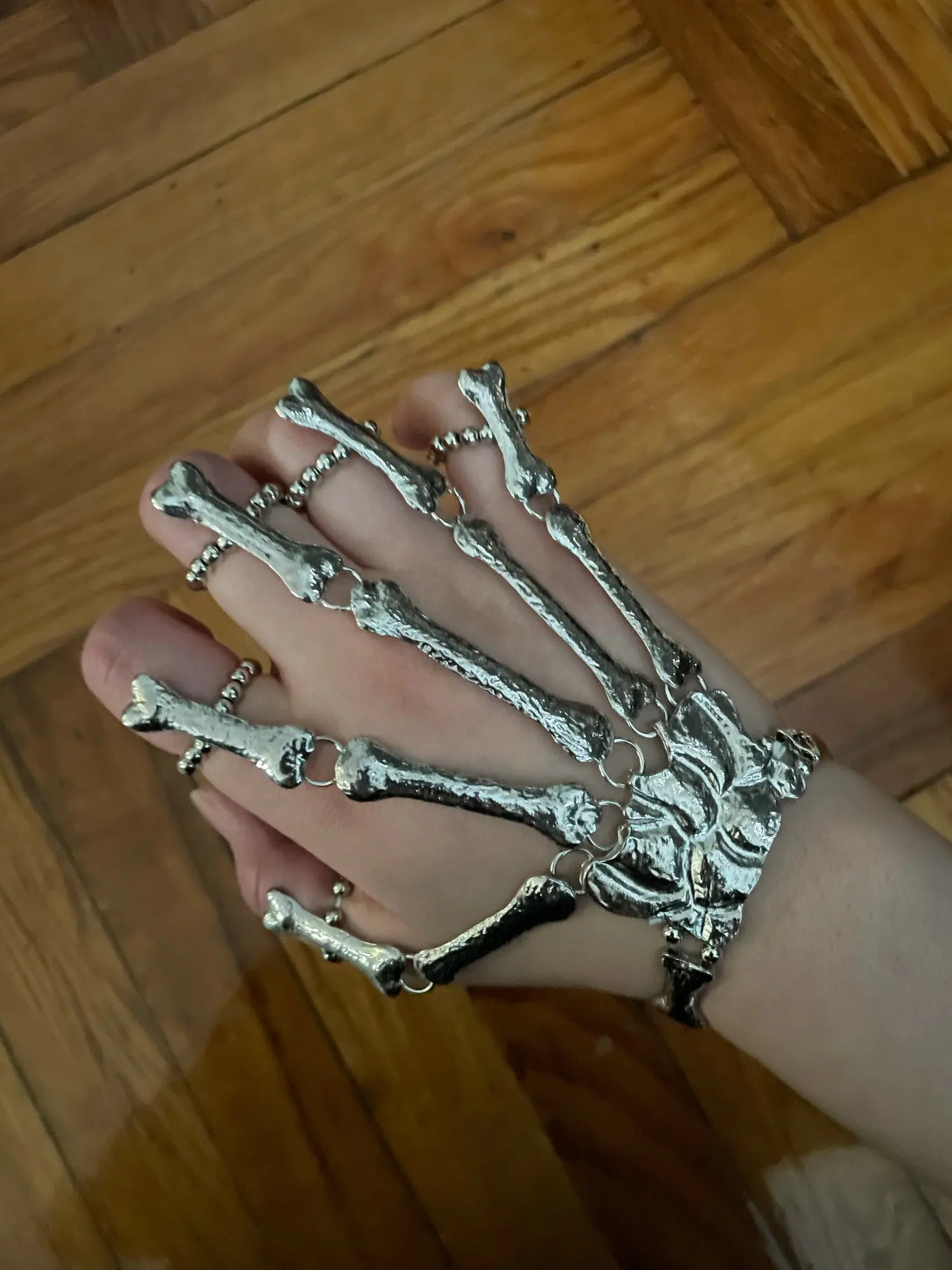 Кольца растягиваются так, что вы можете надеть их, но в какой-то момент они начинают задыхаться пальцами, но это ожидалось. Металл тонкий, но достаточно прочный, поэтому я рекомендую вам быть внимательными, так как это на ваших руках, которые мы много двигаемся (вы не хотите, чтобы кольца, которые соединяют пальцевые кости к косточке запястья, сломались!) цвет соответствует обещанию. Мои ногти маленькие (даже накладные ногти на одежде подходят), поэтому мои руки тоже маленькие. Я надеюсь, что это хорошая информация для вас, если у вас есть маленькие руки. Они мне подходят! Не выбирайте общаться с продавцом