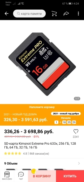 Страна: RU Capacity: 64GB Доставка: Standard Shipping 24.01.2021