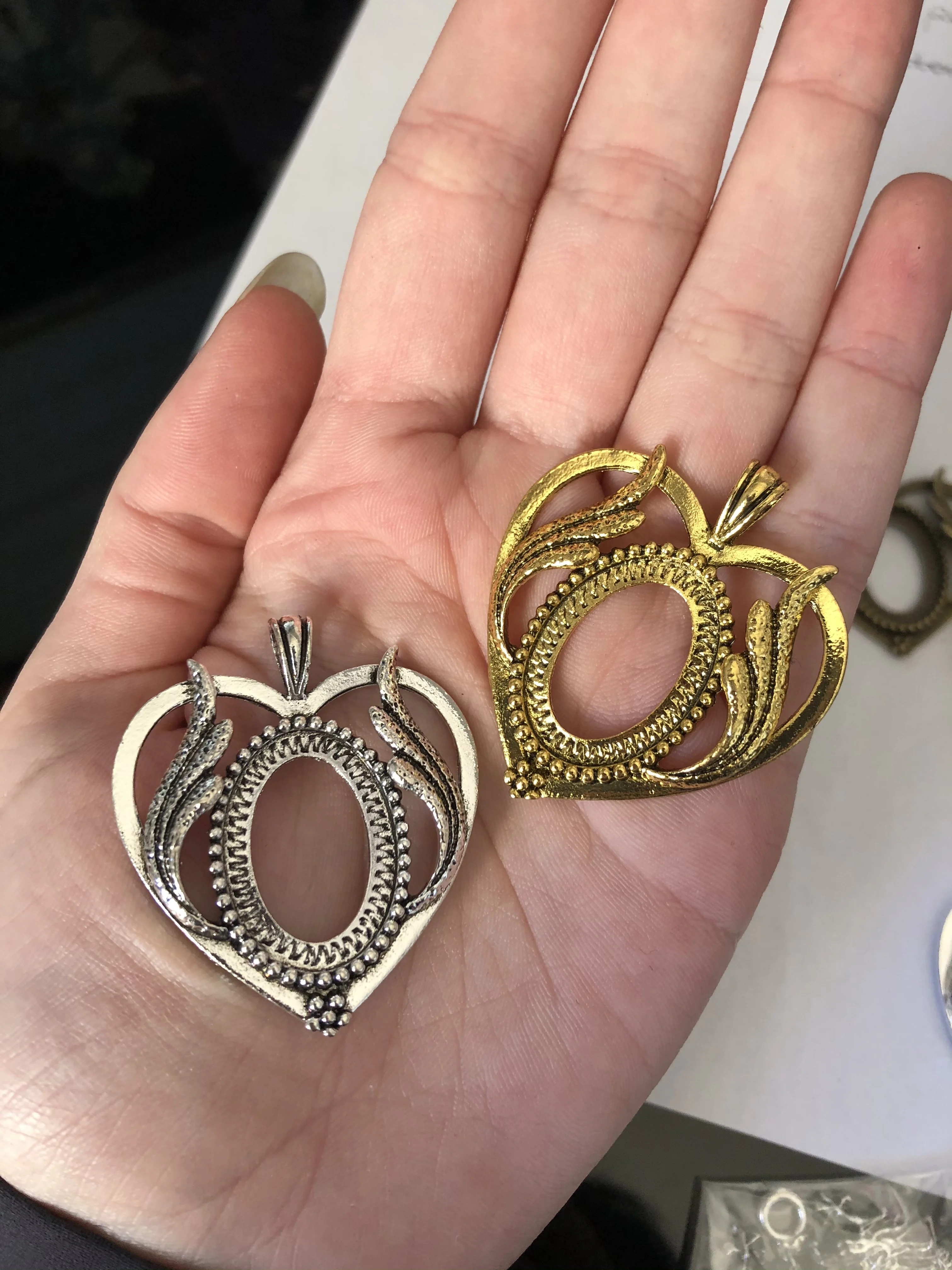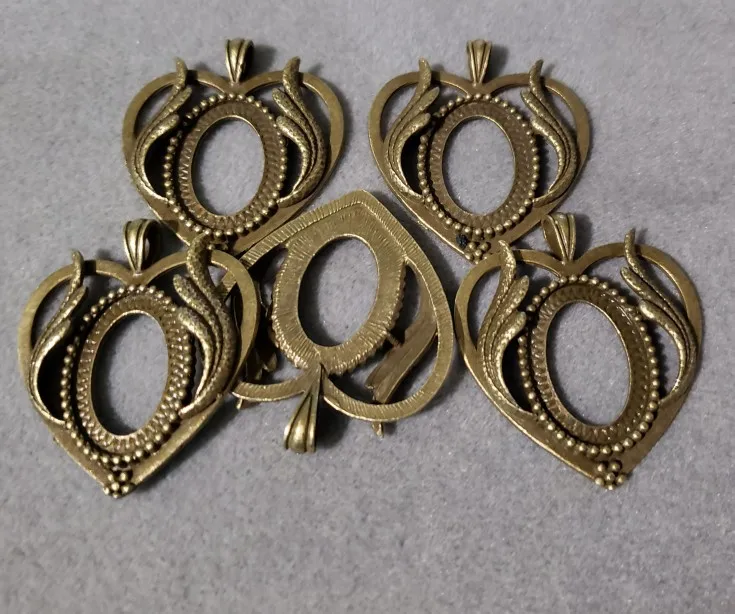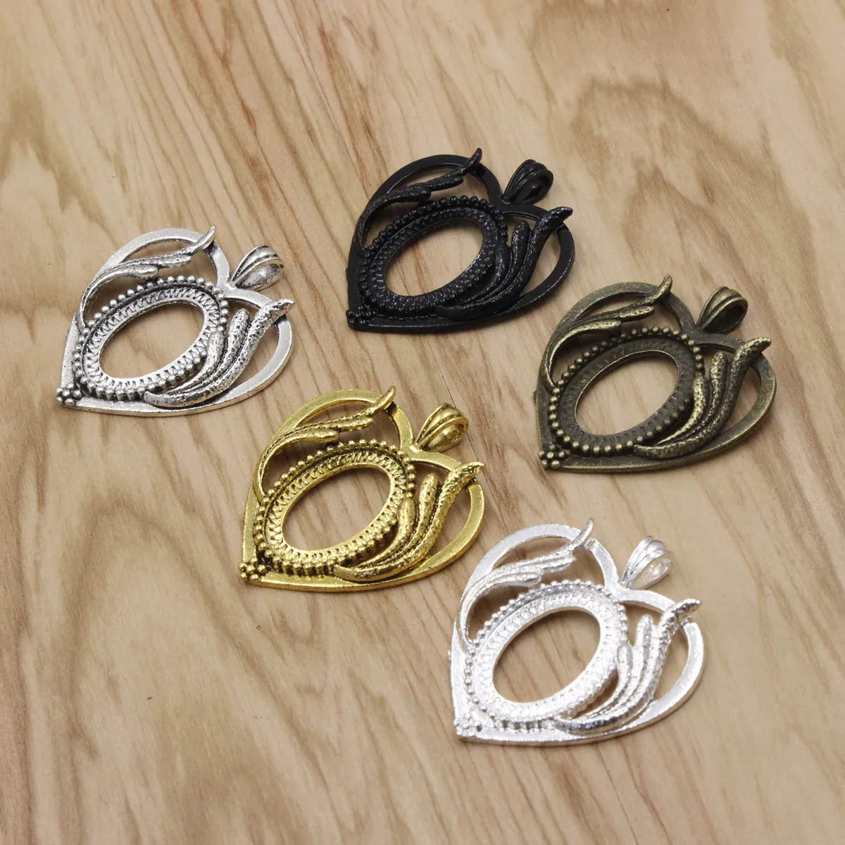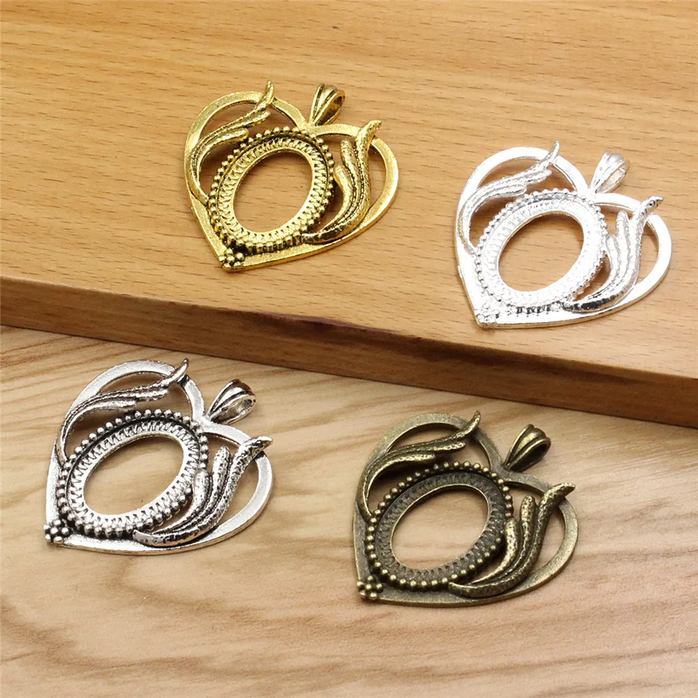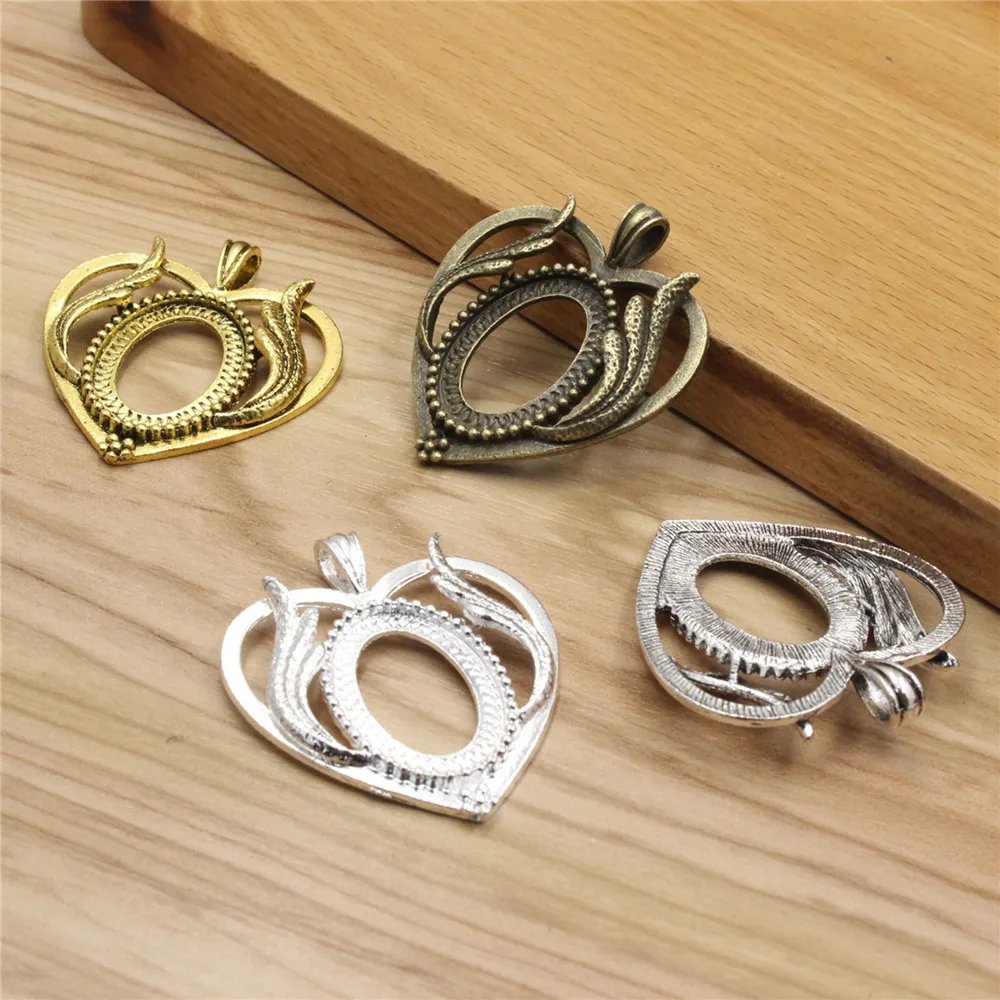 Подходят 18x25 мм крылья сердца античное сереброзолотобронза Камея Кабошон рамка Подвеска лоток пустой 5 шт.лот K05253
