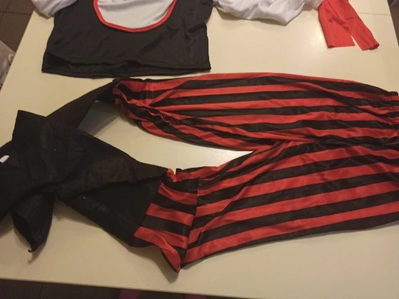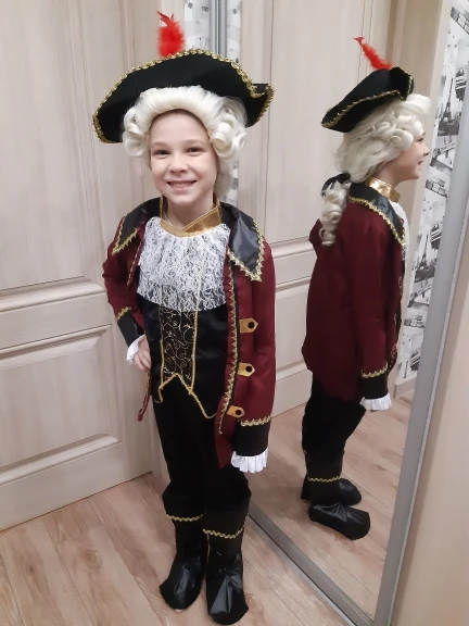 Костюм выглядит так же, как на картинке, к сожалению, шляпа сложена, поэтому было трудно удалить все doubleces. Швы и ткань хорошие, но могут быть лучше. Размер хороший, но лучше для худых детей. Я не общался с продавцом.