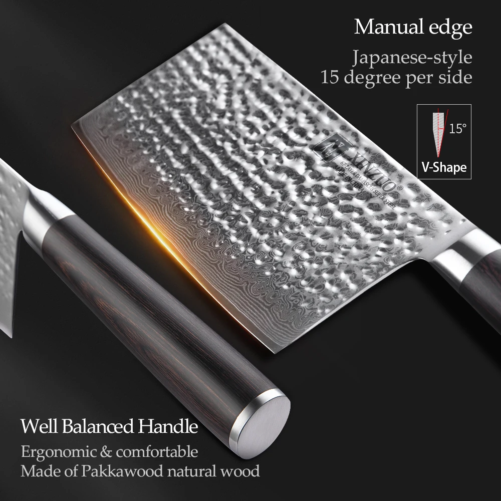 Нож для мясников XINZUO, 7 дюймов, 67 слоев, дамасская нержавеющая сталь, китайский измельчитель, ножи с ручкой из дерева Pakka