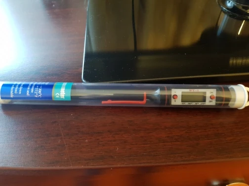 Заказывал три термометра - чёрный пришёл в тубе, два остальных - в белых коробочках. Все без батареек, опознавательных знаков нет, внешне качество обычное. На фото ниже результаты двух замеров кипящей воды (кран и бутилированная), самый дорогой термометр оказался самым неточным, удивился :/ продолжаю наблюдение