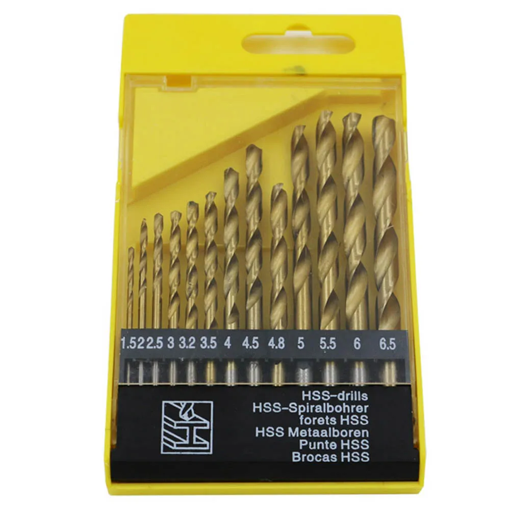 Набор сверл из титана с круглым хвостовиком и покрытием HSS, 13 шт., 1,5-6,5 мм