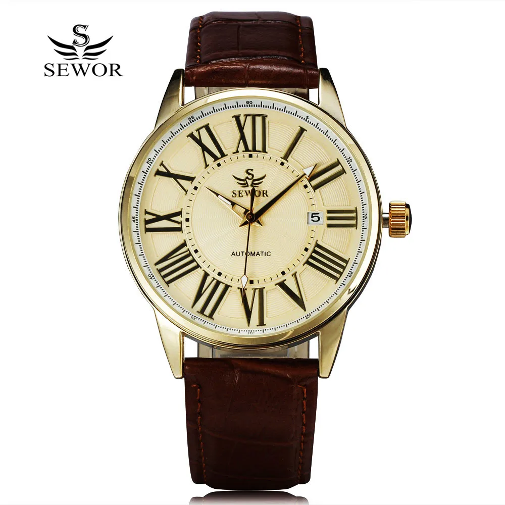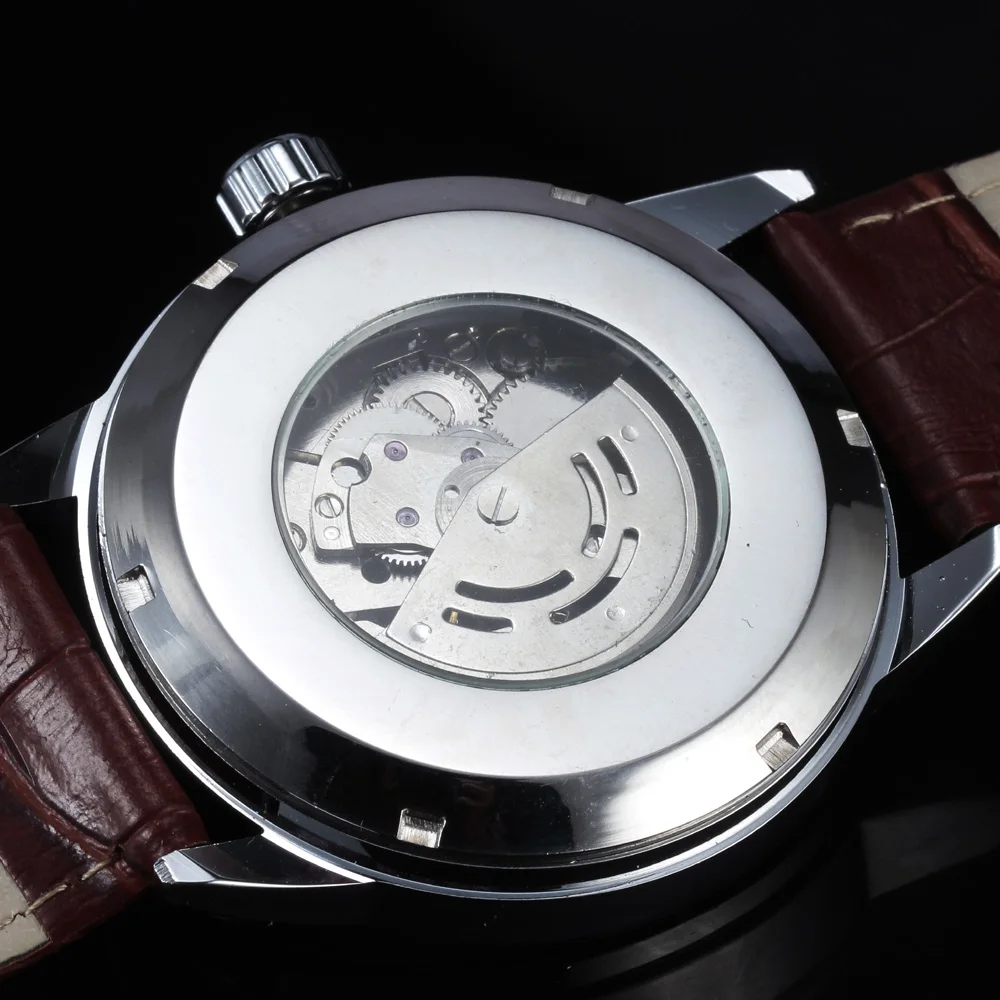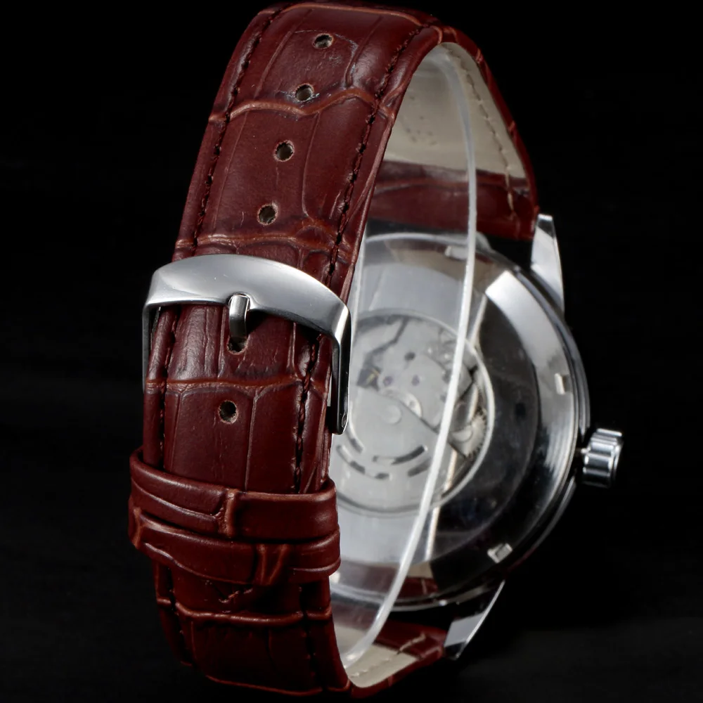 Часы Мужские автоматические механические с календарем, кожаным ремешком и автоподзаводом
