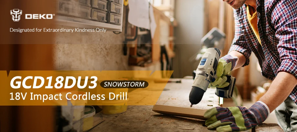 DEKO GCD18DU3 18V 1/2-дюймовый аккумуляторная дрель с максимальный крутящий момент 50N.m сочетает в себе Двойной диапазон скорости и 15 + 2 положения сцепления в компактном размере, который обеспечивает точное управление для сверления в дерево, металл, пластик и все задачи отвертки. Максимальная емкость сверления 13 мм для металла и 35 мм для дерева. Идеально подходит для сверления и крепления для таких применений, как обрамление, ремонт и установка шкафа. С большим ударом в небольшой посылка, DEKO GCD18DU3 Аккумуляторная дрель является прекрасной основой для любого профессионального подрядчика или коллекции электроинструментов DIYer.