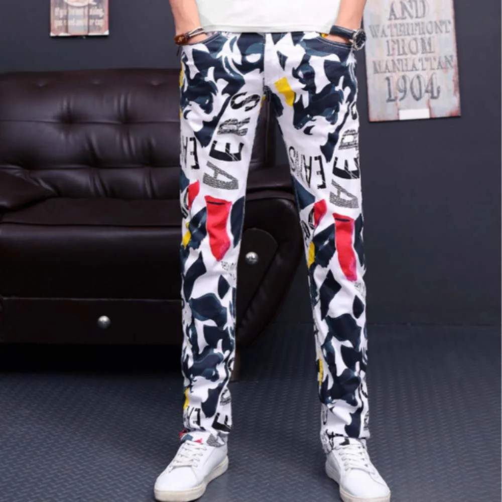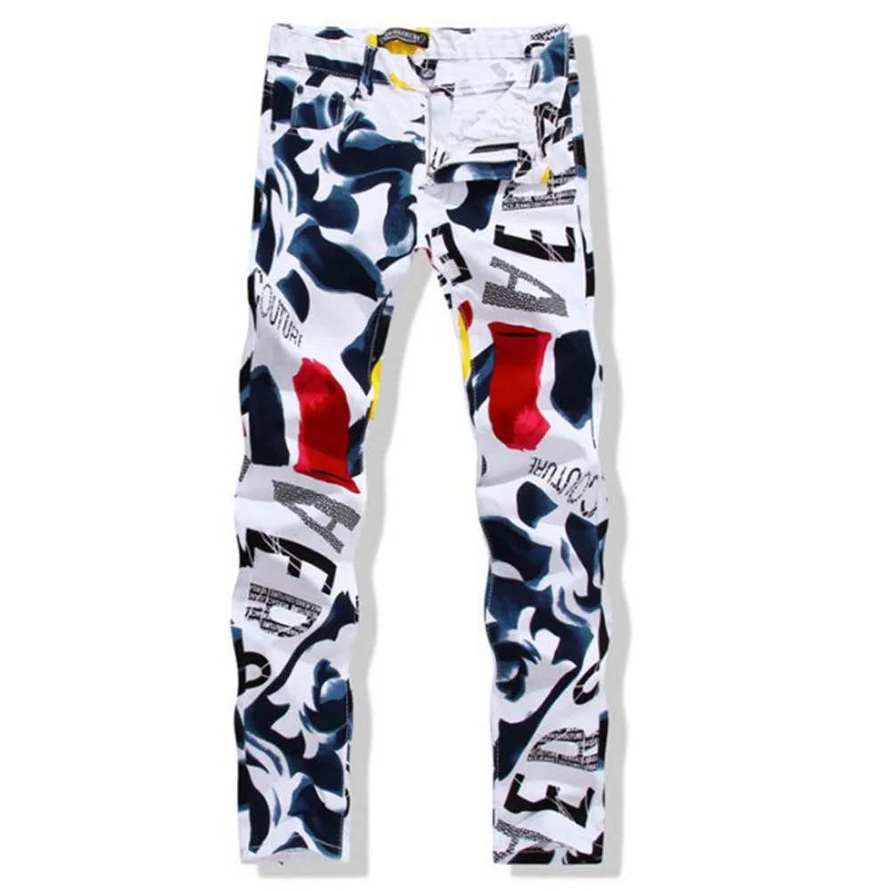 Горячая 2021 печатных белые штаны, костюм с цветочным принтом, в ковбойском стиле, мужская мода высокие эластичные домашние штаны для танцев в стиле хип-хоп тренировочные брюки размера плюс