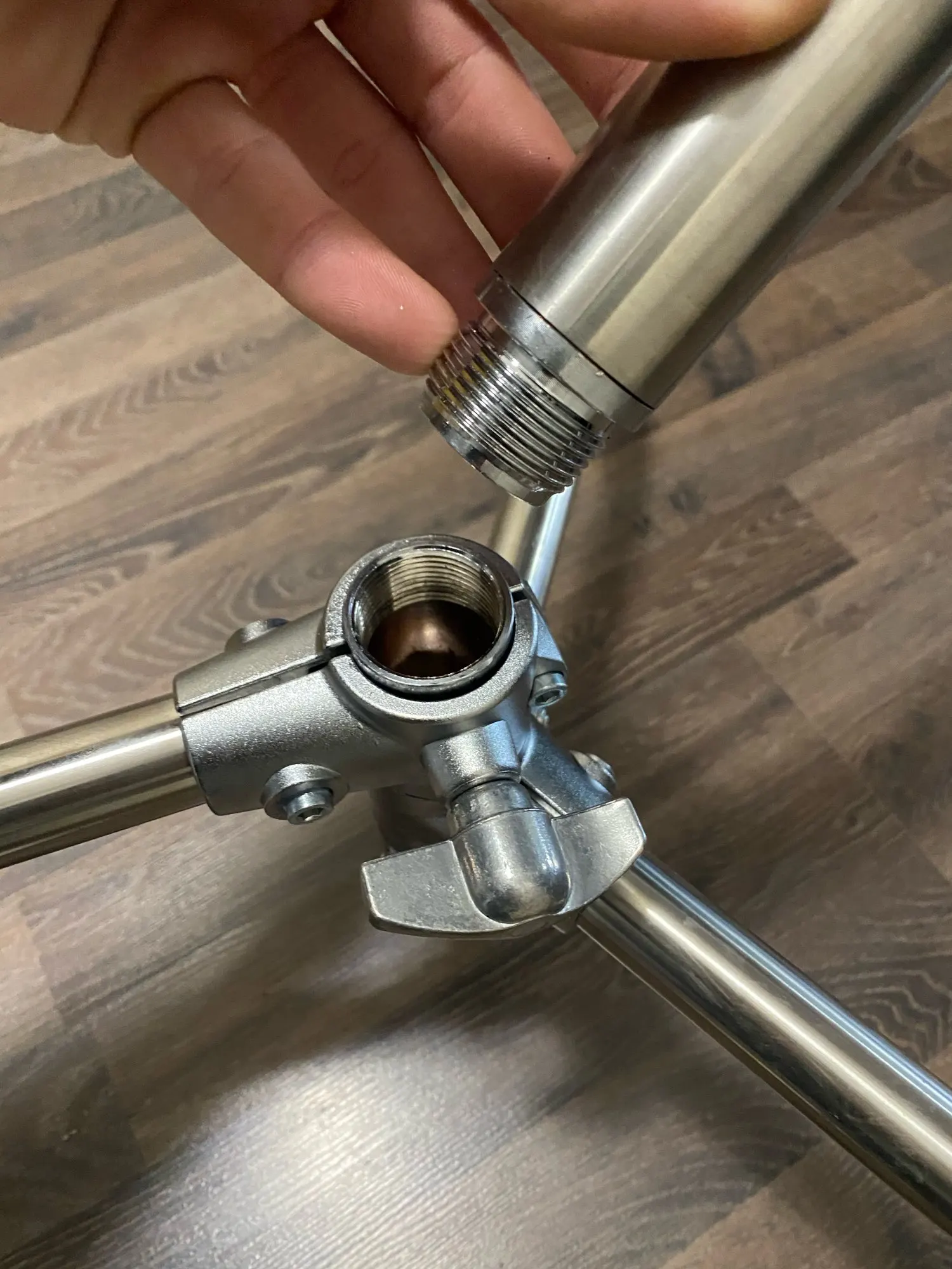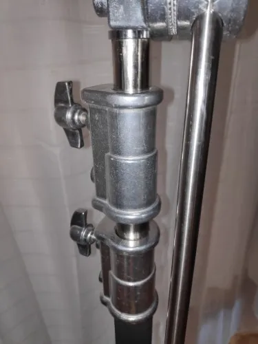 Я получил другую подставку. В описании, на картинке, продавец загрузил еще одно решение, чтобы зафиксировать главный столб. Стенд, который я получил, имеет разный конец. В этом растворе может поместиться только флаг или маленькая вспышка...