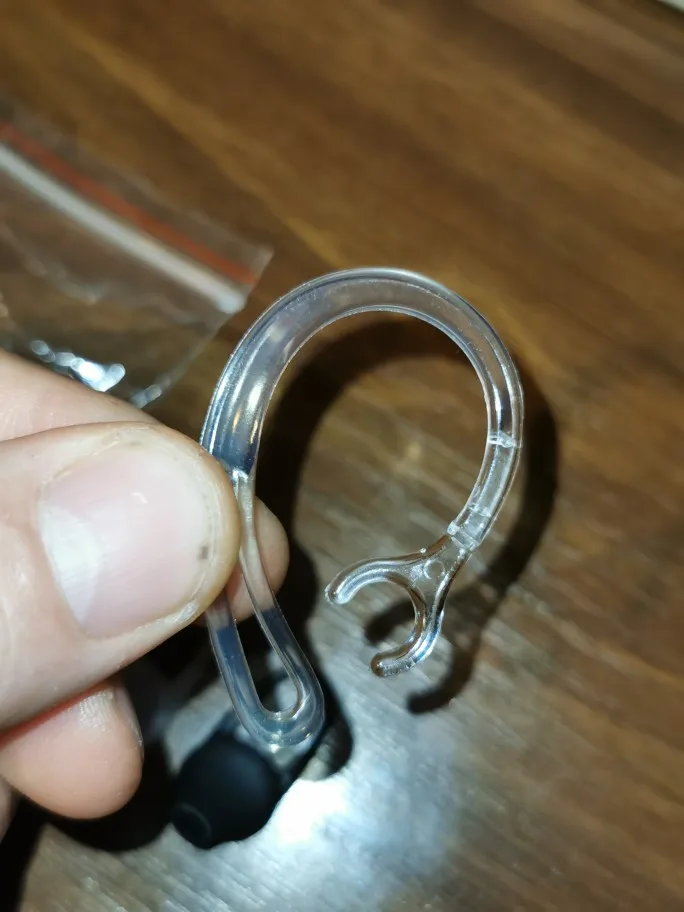Крючок очень мягкий, это хорошо, без запаха, удобный, но надо было брать меньше. Слетает с блютуса. Насадки слишком мелкие, с трудом одеваются на динамик, не знаю можно их будет использовать, или подарить сразу на работе у кого блютус других марок и более миниатюрный. Отправили как обычное письмо на почту, упаковали хорошо, все доехало в сборном пакете в целости. Шло немного долго. Жаль, что крючок выбрала не правильно, его точно бы использовала, силикон очень мягкий и был бы достаточно комфортным, наушник ношу почти весь рабочий день. Продавцу - спасибо за товар.