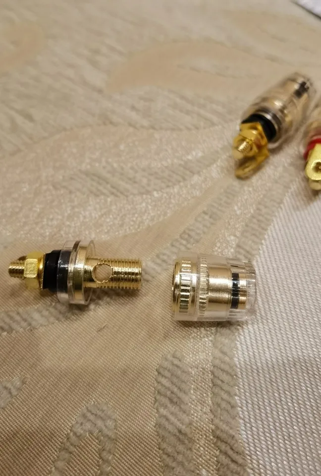 Простенькие ,но крепкие терминалы. Магнитная отвёртка к ним не липнет. Так же проверял на сопротивление(было видео про rca разъемы с плохой проводимостью). Никаких проблем. В общем и целом за свои деньги действительно хороший вариант.